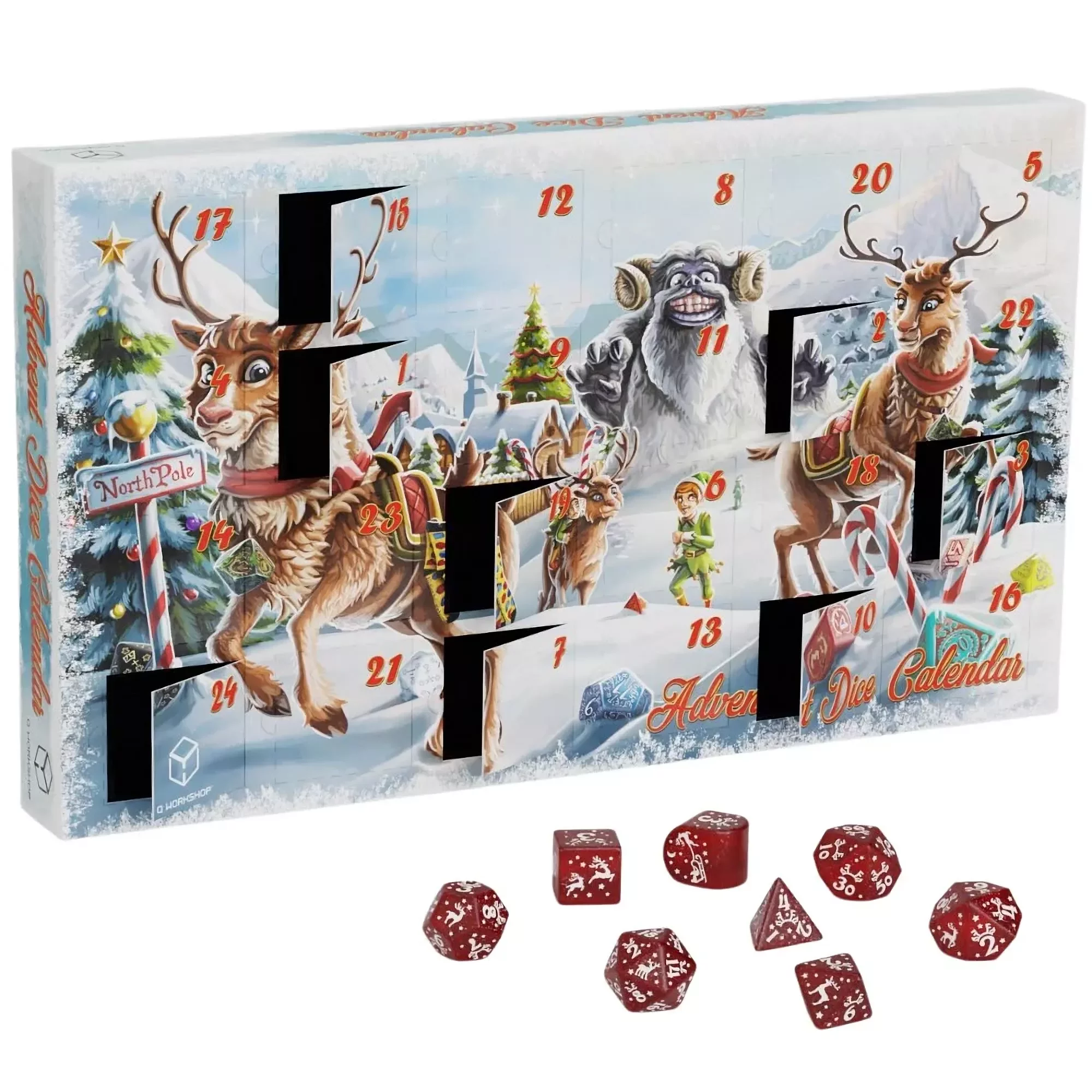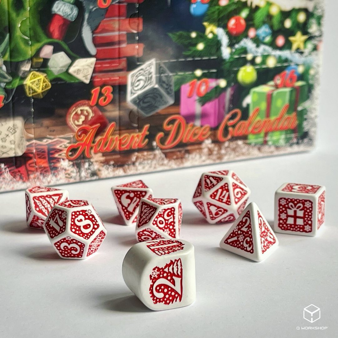 A naptár diétás változata, amelyből nem minden nap csokoládé, hanem egy miniatűr dobókocka hullik ki a Q-Workshop jóvoltából. Összesen 24 különböző sokoldalú kockára számíthatsz. A csomagban ráadásul egy teljes, limitált kiadású, karácsonyi témájú kockakészletet is találsz.