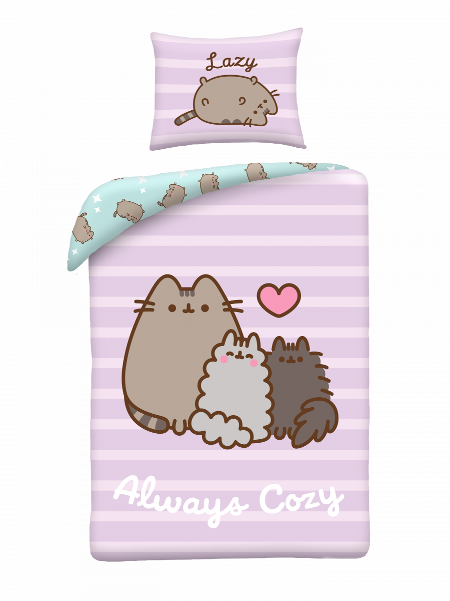 A lágy csíkok, a szív motívum és az „Always Cozy” felirat a nyugalom és az otthon melegének tökéletes hangulatát teremtik meg. Ideális választás minden Pusheen rajongónak, akik mosollyal szeretnének elaludni és a kényelem világába ébredni.