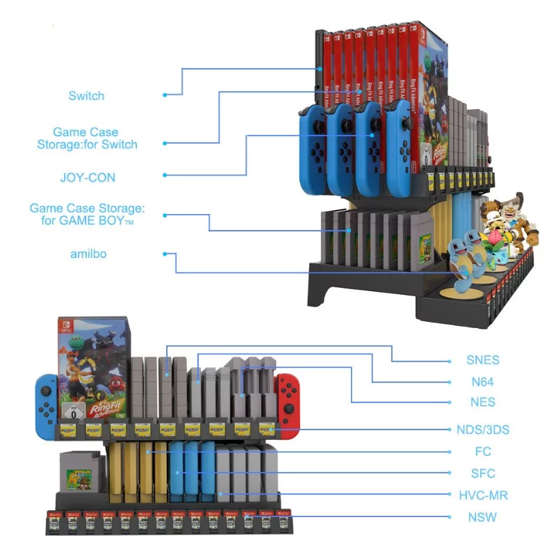 Nintendo / Nintendo Switch / Switch tartozékok / Tokok és kiegészítőkTedd ki a Nintendo gyűjteményed legbecsesebb darabjait erre a gyönyörű és ötletes állványra, amelyre a Nintendo Switch-től kezdve egészen a Nintendo 64-ig, a Game Boyig vagy a NES-ig és a Famicomig visszamenőleg bármit kirakhatsz . Amiibo figurák vagy joy-con kontrollerek is helyet kaphatnak.