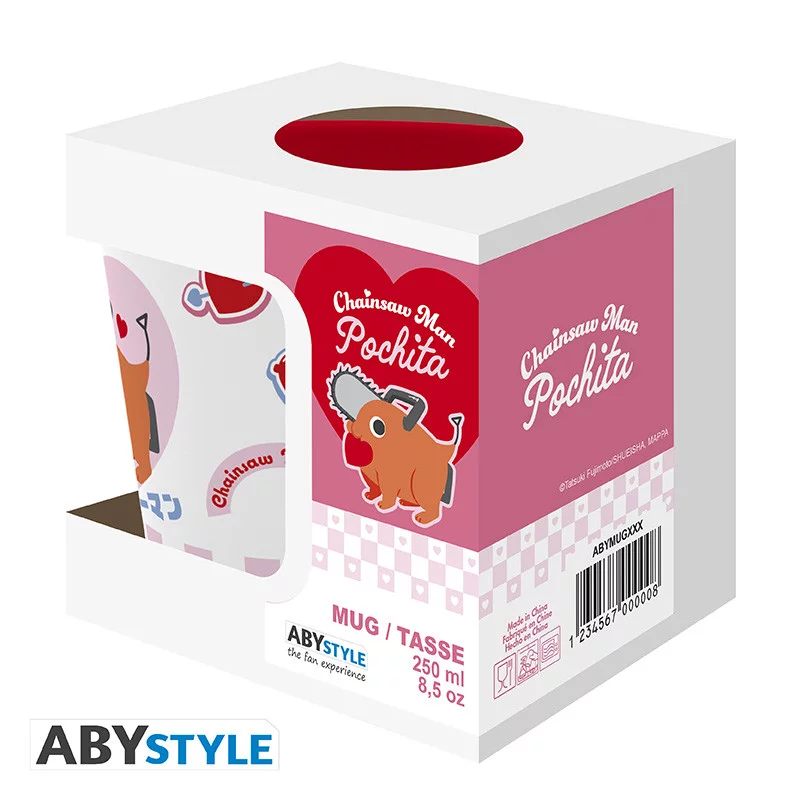 Tedd kellemesebbé a napodat az aranyos Pochita társaságában a Chainsaw Man világából. Ez a bögre már első pillantásra elvarázsol játékos dizájnjával, tele szívecskékkel és édes részletekkel, amelyek minden rajongót mosolyra fakasztanak.