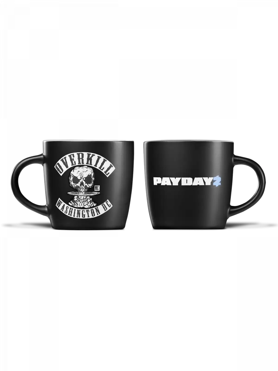 Stílusos fekete bögre, amelyet a PayDay 2 játék ihletett, Overkill Washington DC motívummal. Tökéletes választás minden rajongónak, aki imádja a legendás rablásokat – ideális a reggeli kávéhoz vagy az éjszakai akciótervezéshez.Térfogat: kb. 330 ml