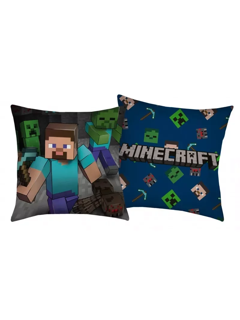 Egy gyönyörű párna a legendás Minecraft játék logójával és Steve gyönyörű képével, amint a szörnyek elől menekül. Tökéletes pihenésre egy gyémántbányászattal töltött nap után.