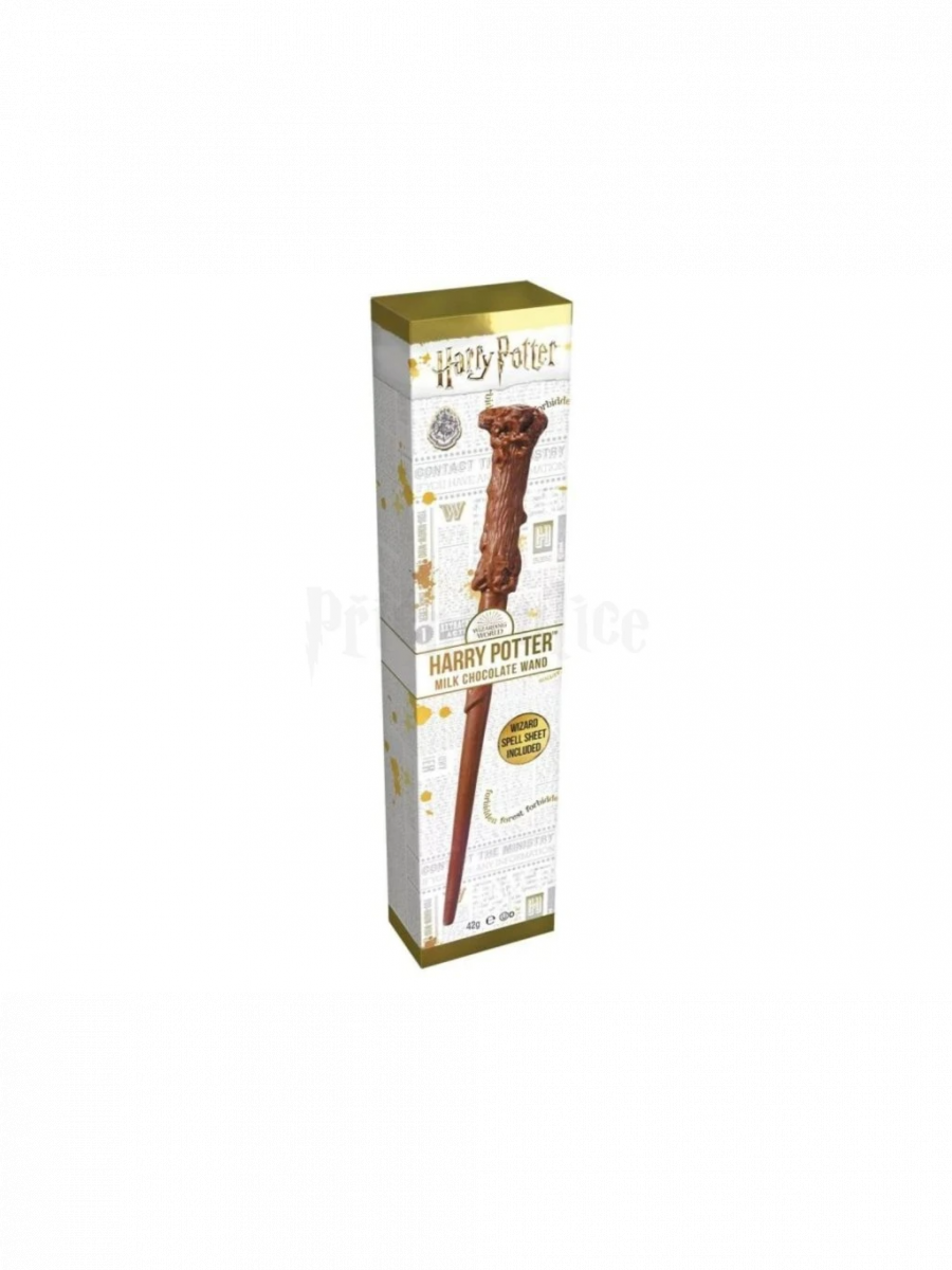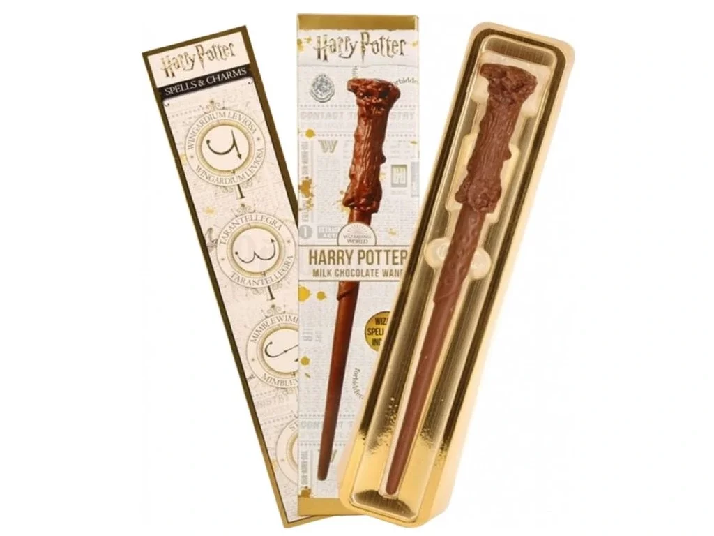A könyv szerint Harry pálcája magyal fából készült, és a magjában egy főnix tolla rejtőzik. A mi változatunk viszont ellenállhatatlanul finom tejcsokoládéból készült.