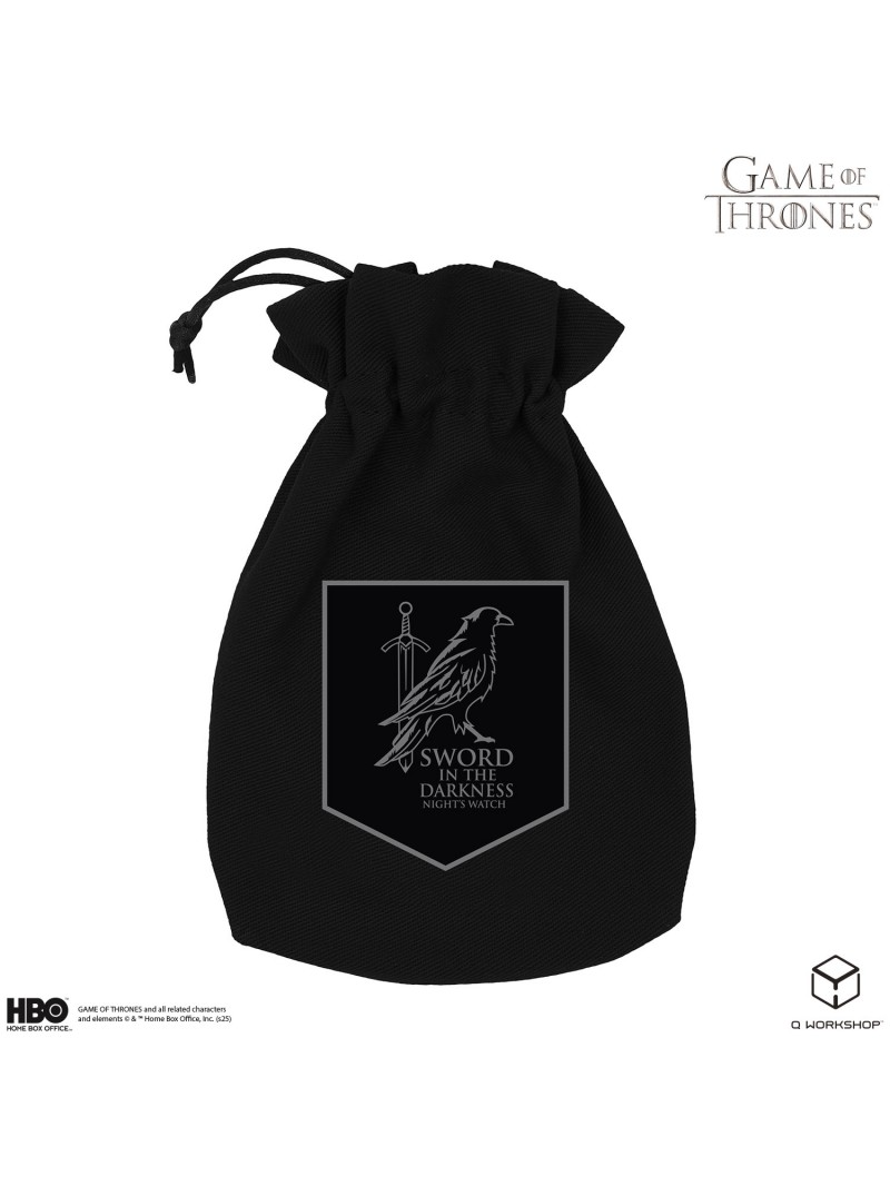Őrizze meg kockáit, mint a Fal igazi őrzője a Game of Thrones – Night’s Watch dobókocka-zsákkal. A fekete design a holló jelképével és a „Sword in the Darkness” mottóval tökéletesen kifejezi az Éjjeli Őrség elszántságát.