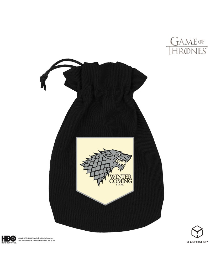 Védje kockáit az Észak komolyságával a Trónok harca – Stark dobókocka-zsákkal. A fekete design a farkas jelképével és a „Winter is Coming” mottóval Zúzmaravár hangulatát idézi.