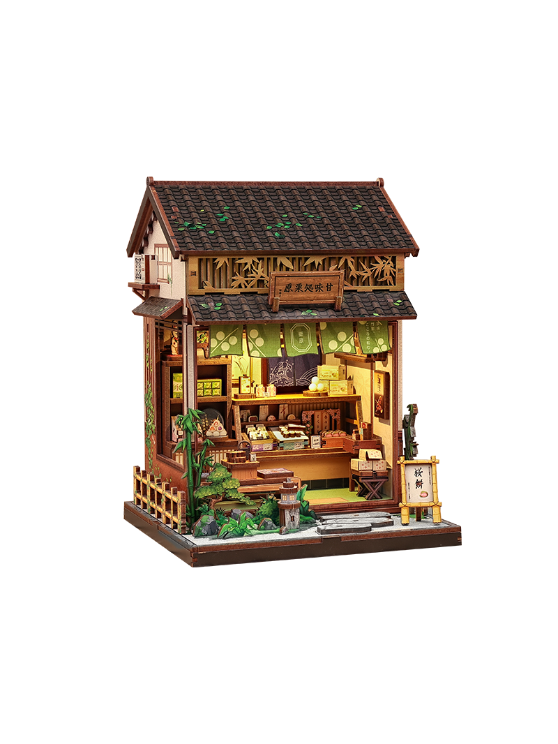 Belül gondosan kidolgozott vitrinek, finomságokkal teli polcok, valamint a bejárat előtti apró kerti elemek várják. Minden részlet életre kelti a modellt, így ideális választás a miniatűrök szerelmeseinek, akik élvezni szeretnék az alkotás folyamatát, és otthonukban egy darabka japán eleganciát szeretnének kiállítani.