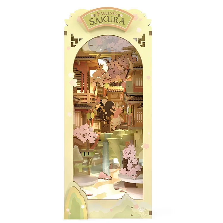 A Falling Sakura könyvtámasz finom, nyugodt hangulatot visz a polcodra, amelyet a japán cseresznyefák ihlettek. A rétegzett fa jelenet egy apró, virágok közé rejtett világ hatását kelti, ahol találkozik a hagyomány, a harmónia és a költői hangulat.