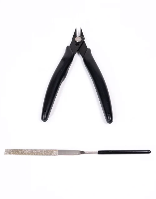Tartozékok a modellek építéséhez, többek között fogó és reszelő, ideális a Metal Time fémkészletekhez.