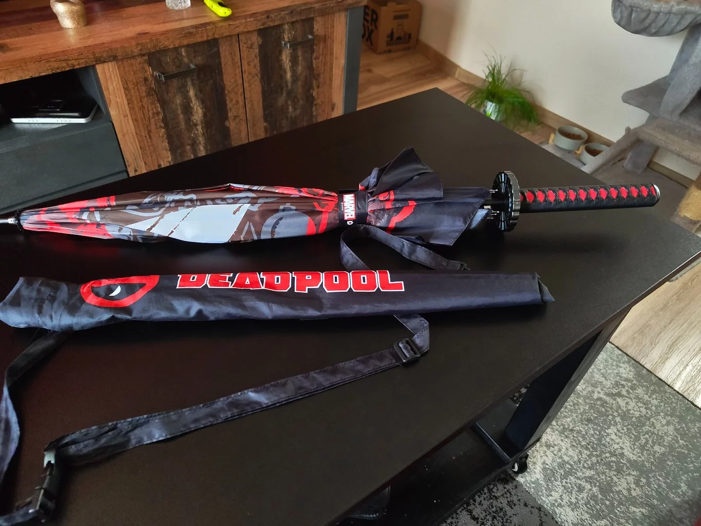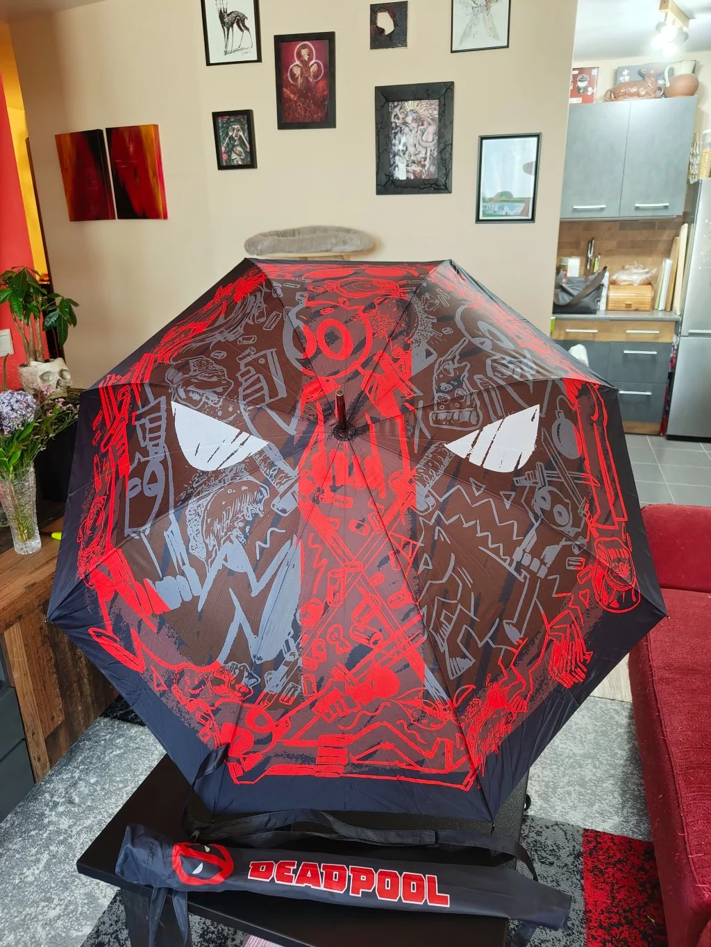 Nagyszerű esernyő esős időben való vándorláshoz, de összehajtva is igazán stílusos. Sőt, a nyél és a tok a Deadpool által használt szamuráj katana formáját idézi! Egy menő kiegészítő e szokatlan szuperhős minden rajongójának.