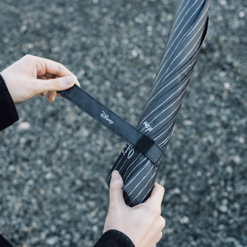 Ezzel a stílusos, a The Nightmare Before Christmas világát idéző esernyővel egy darabka Halloweentownt és Jack Skellington eleganciáját viheted magaddal.A sötét tónusú, minimalista csíkos dizájnt diszkrét filmes logó egészíti ki, míg az ikonikus koponyával díszített markolat egyedi, enyhén morbid bájt kölcsönöz az esernyőnek.
