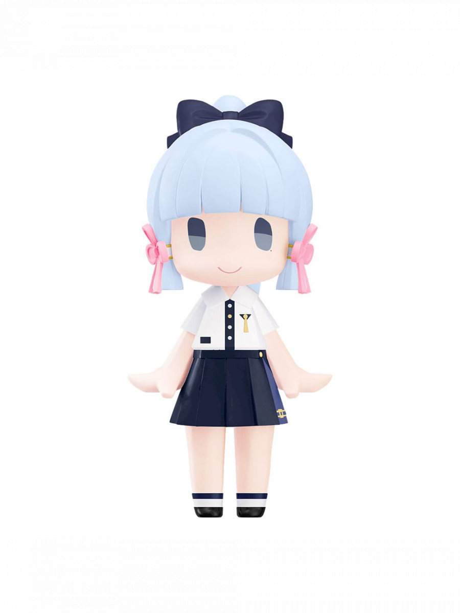 Aranyos Ayaka Kamisato figura a Genshin Impact világából, minimalista chibi stílusban, amely könnyed formában adja vissza a Kamisato klán örökösnőjének elegáns báját.