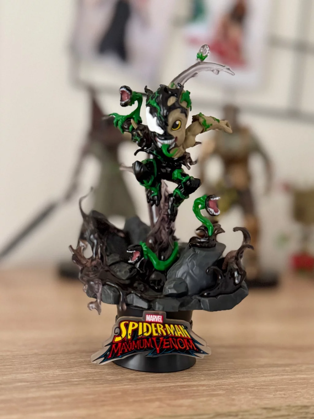 A Beast Kingdom bemutatja a diorámafigurák új sorozatát, amelyben a Venom szimbiótával megfertőzött híres Marvel-képregényhősök szerepelnek, a Maximum Venom Series néven. Ezeknek a figuráknak a limitált kiadása világszerte 4500 darabra korlátozódik, és különleges átlátszó hatású és egyedi csomagolású. Ebben Little Groot van méreggel a testében!Méret: cca 16 cm