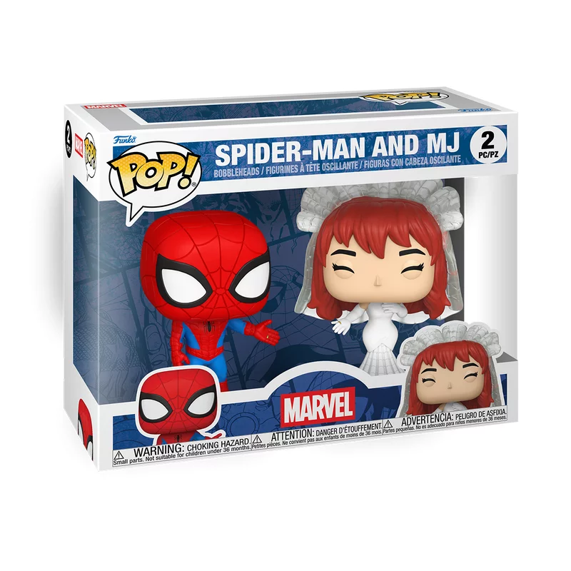 Spider-Man klasszikus jelmezben, míg MJ elegáns menyasszonyi outfitben jelenik meg, tökéletes kontrasztot alkotva, amely azonnal magára vonja a tekintetet. A részletgazdag kidolgozás és a jellegzetes Funko stílus igazán látványos darabbá teszi ezt a 2-pack kiadást bármely gyűjteményben.