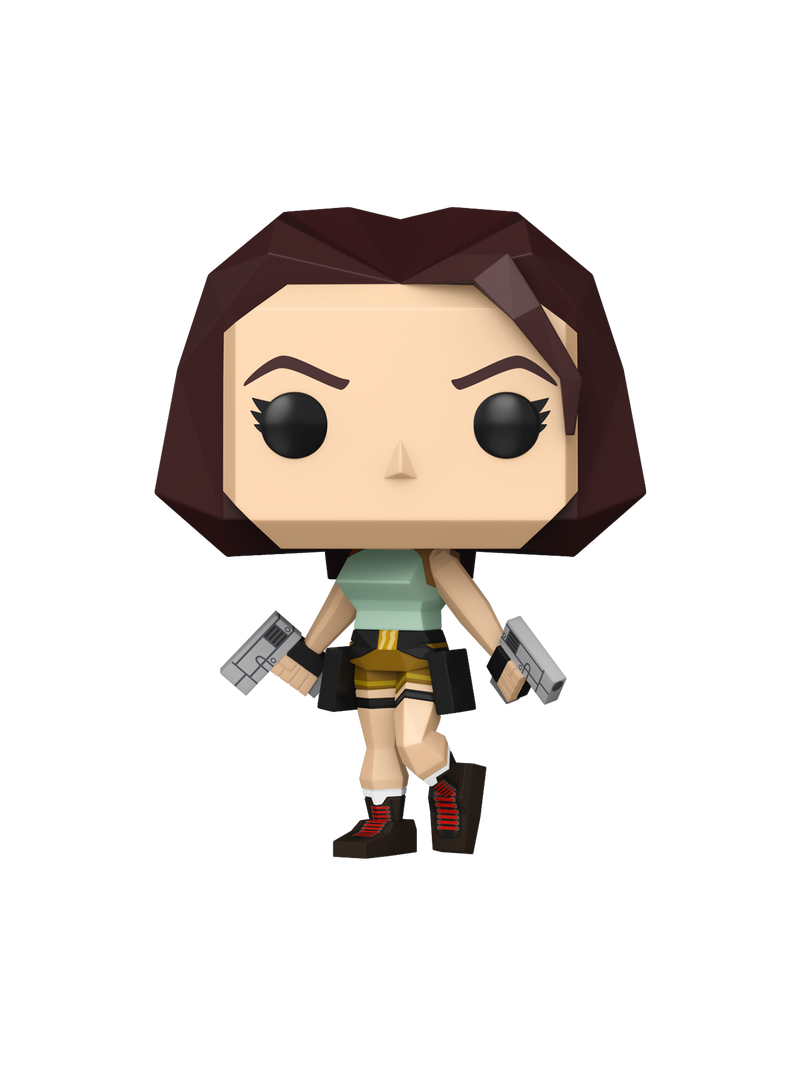 A poligonális Lara Croft elhozza az első Tomb Raider játékok nosztalgiáját abban az ikonikus, „szögletes” stílusban, amely egy egész játékos generációt határozott meg.A Funko POP! változat hűen idézi meg a klasszikus low-poly megjelenést – éles vonalak, egyszerű formák és az összetéveszthetetlen öltözék türkiz toppal, rövidnadrággal és a jellegzetes dupla pisztollyal. Pontosan úgy, ahogyan az első PlayStation-kalandokból emlékszünk rá.