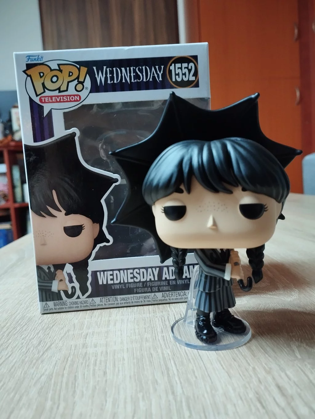 A népszerű Funko POP! figurasorozat kibővül a Jenna Ortega főszereplésével készült, szerdai Netflix-siker sorozat figuráival. Ezúttal a főszereplő Wednesday Addams szerepel.Méret: cca 9 cm