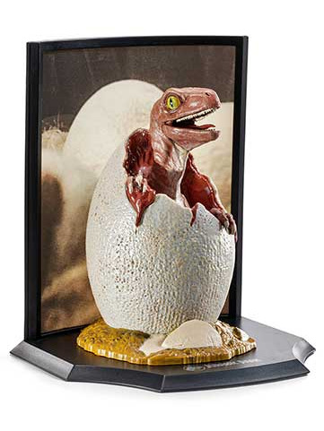 A Noble Collection a Toylectible Treasures dioráma sorozatot mutatja be népszerű filmekből. Maguk a figurák állvánnyal és bekeretezett képpel járnak, így még jobban mutatnak a polcon! Ez a Jurassic Park látogatása egy fióka dinoszaurusz formájában.Méret: cca 9 x 8 x 12,5 cm