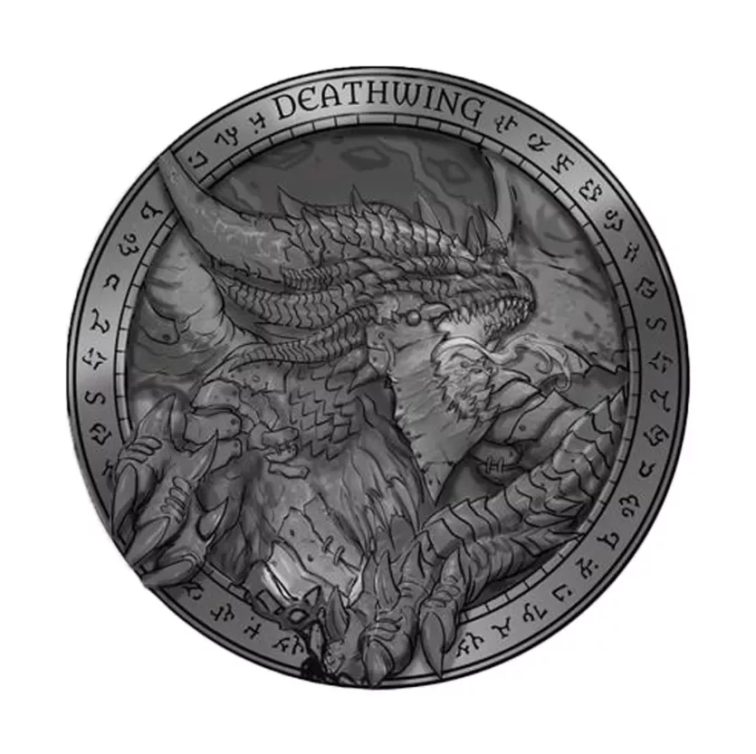 A Blizzard által kibocsátott World of Warcraft gyűjtőknek szánt érme, mindkét oldalán dombornyomással. Hivatalosan engedélyezett termék. Ezúttal Deathwinggel.Méret: 60 mm