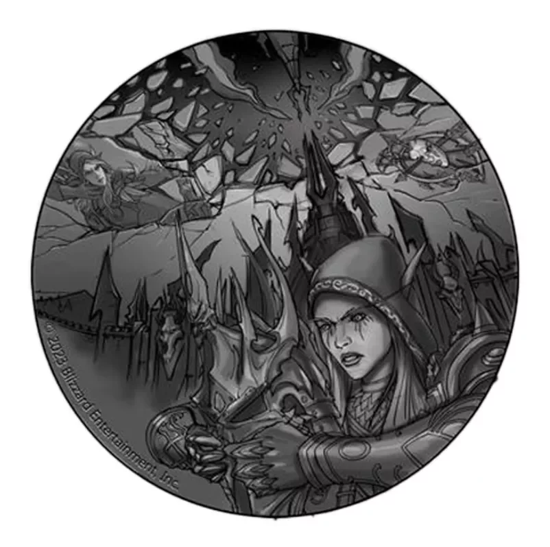 A Blizzard által kibocsátott World of Warcraft gyűjtőknek szánt érme, mindkét oldalán dombornyomással. Hivatalosan engedélyezett termék. Ezúttal Sylvanas-szal.Méret: 60 mm
