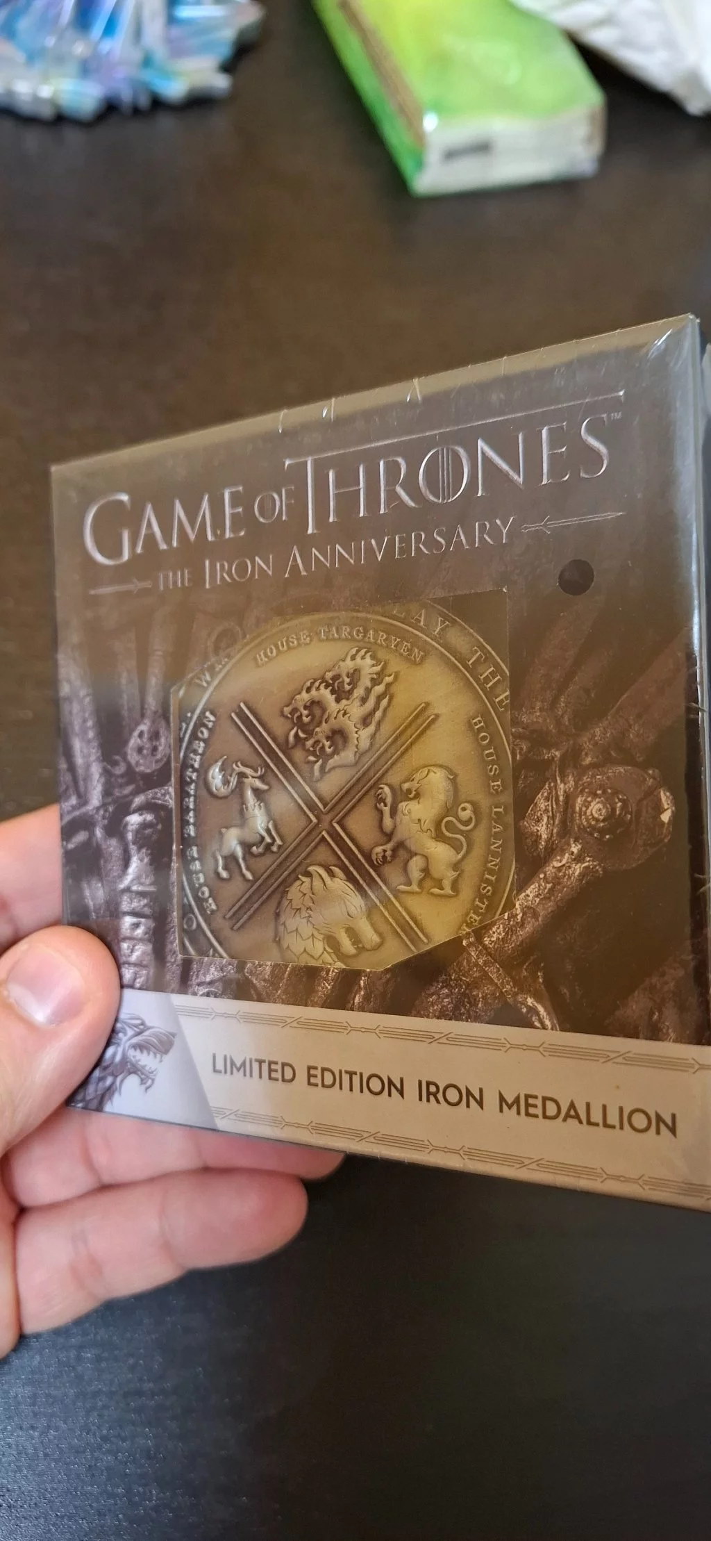 A medaillon a Vastrónt és Westeros négy fő házának szimbólumait ábrázolja. A medál világszerte 9995 darabra van limitálva, mindkét oldalán dombornyomással, és minden egyes darab egyedi számozással van ellátva.