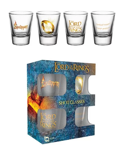 4 db-os feles pohár szett a Gyűrűk ura világábol. A poharak J.R.R. Tolkien tollából íródott Gyűrűk ura motívumai díszítík mint maga a gyűrű és egyébb írások. Praktikus használata mellett kiváló dísztárgy is lehet a polcunkon amíg meg nem kívánunk valami erőset.