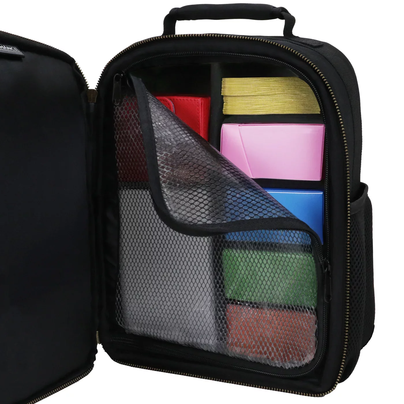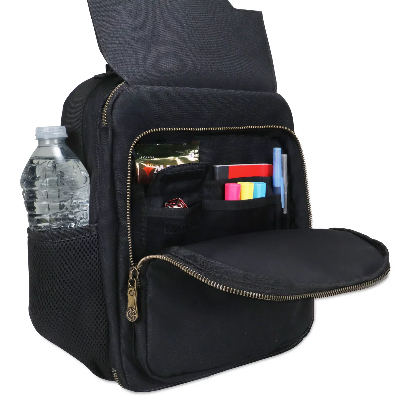 Igazítsd a tárolást a saját játékstílusodhoz! Ez a gyűjthető kártyajátékokhoz tervezett hátizsák állítható elválasztókkal rendelkezik, így biztonságosan rendszerezheted benne a deck boxokat, a kockatartó zsákokat és egyéb kiegészítőket. A hálós Card Defender Screen gondoskodik arról, hogy a kártyák és tartozékok stabilan a helyükön maradjanak, míg az elülső zseb helyet kínál boostereknek, jegyzetfüzeteknek vagy zsetonoknak. A kényelmes, párnázott vállpántok és az oldalsó zsebek — például játéktérképnek vagy kulacsnak — tökéletes utazótárssá teszik a hátizsákot. A fő rekesz 29 × 22 × 11 cm-es méretének köszönhetően elegendő helyet kínál a kártyáidnak és minden szükséges játékfelszerelésnek.