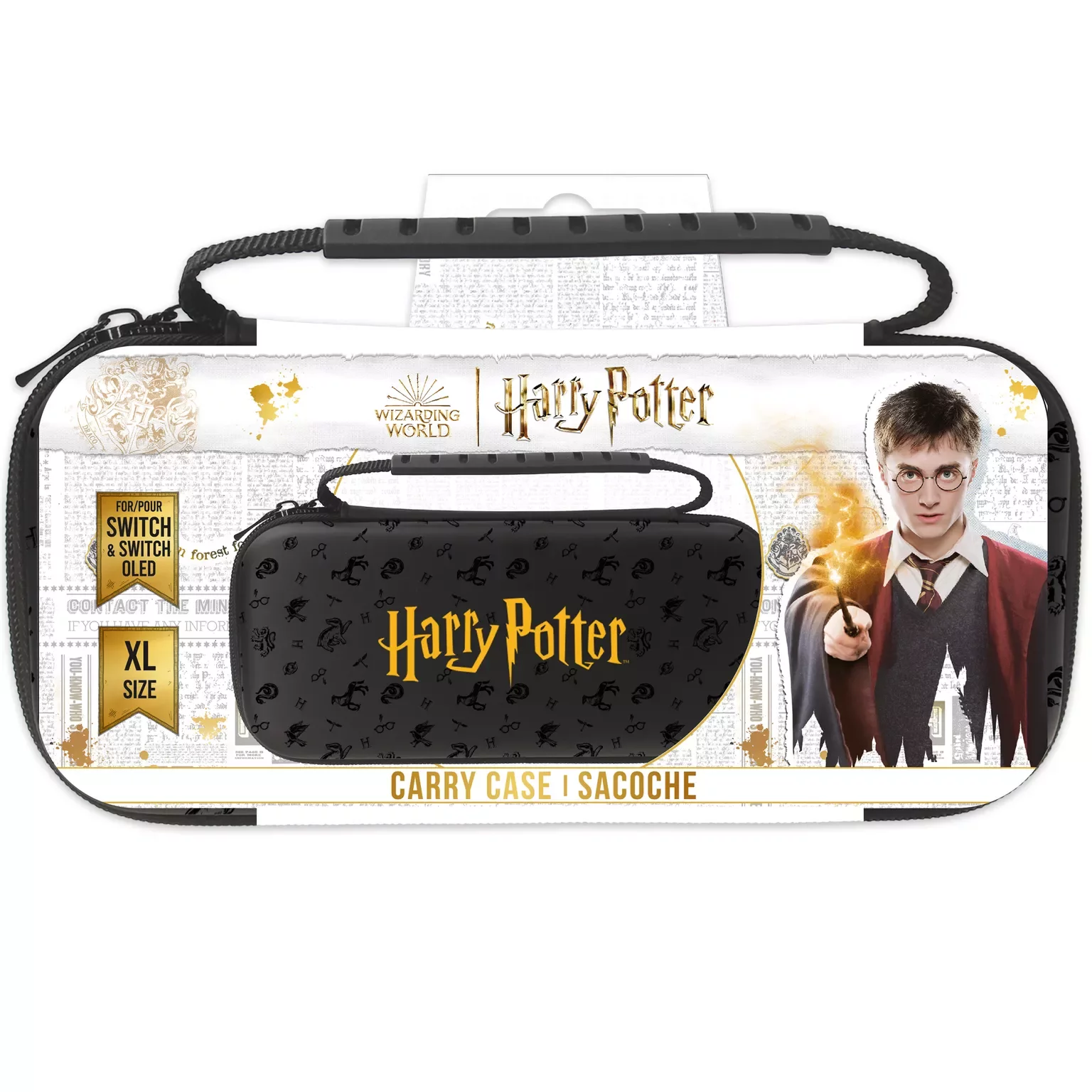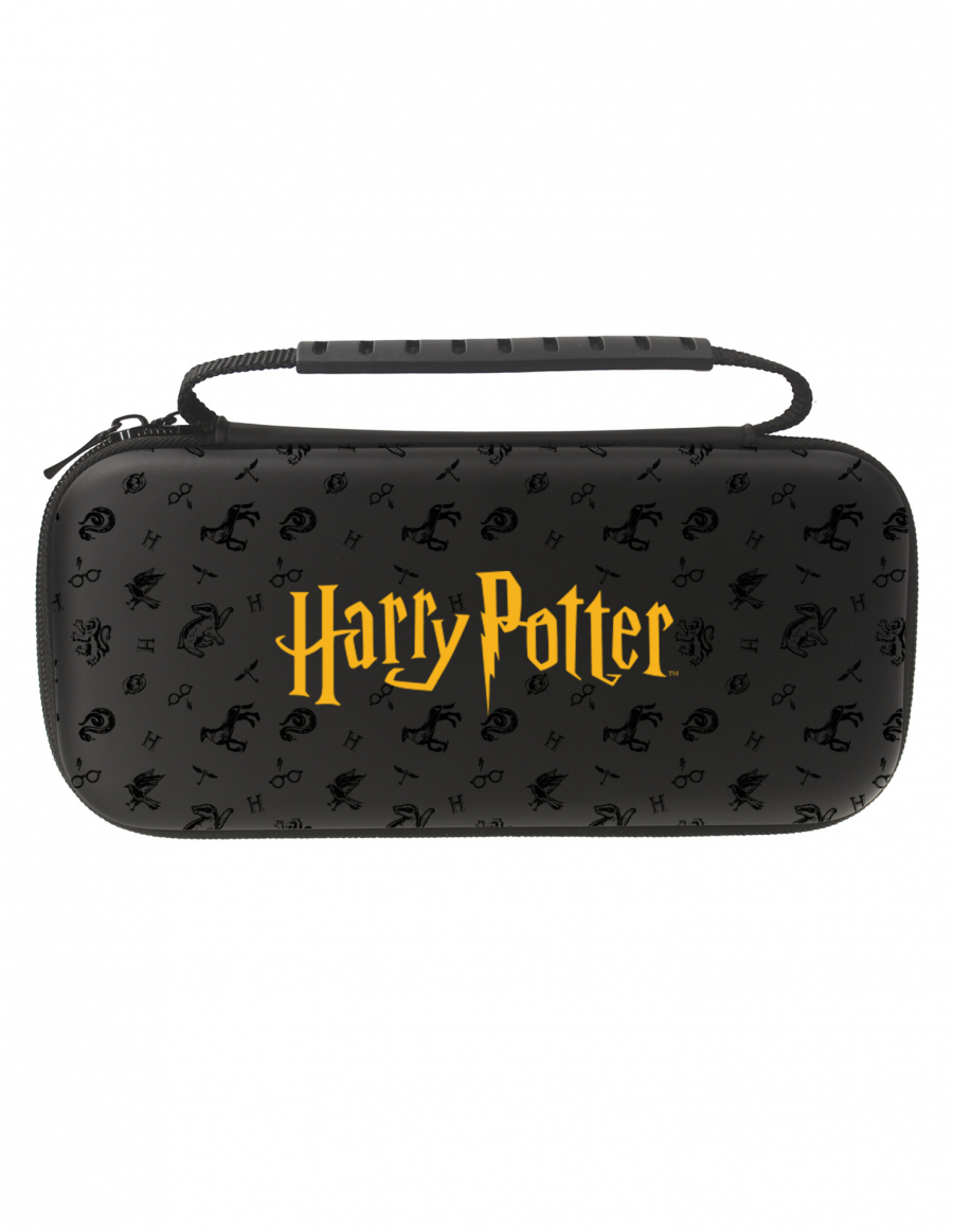 Ezt a nagy hordtáskát, amelyen a Roxfort Boszorkány- és Varázslóiskola Harry Potter logója látható a Roxfort Legacy akció-RPG-ből, Nintendo Switch, Switch Lite és Switch – OLED Model játékkonzolokhoz készült. A tok rendkívül strapabíró anyagból készült, amely a megerősített belsővel együtt biztosítja, hogy ne történjen semmi rossz a konzoljával menet közben. A tokba nagy méretei miatt nem csak a konzolt a hozzá csatolt Joy-Con kontrollerekkel és tíz kártyát helyezheted el kedvenc játékaiddal, hanem szükség szerint egyéb kiegészítőket is, mint például a Joy-Con Grip tartót, hálózati adaptert, töltőt állomás vagy HDMI csatlakozókábel. A táska a rögzített fogantyúval is kényelmesen hordozható.
