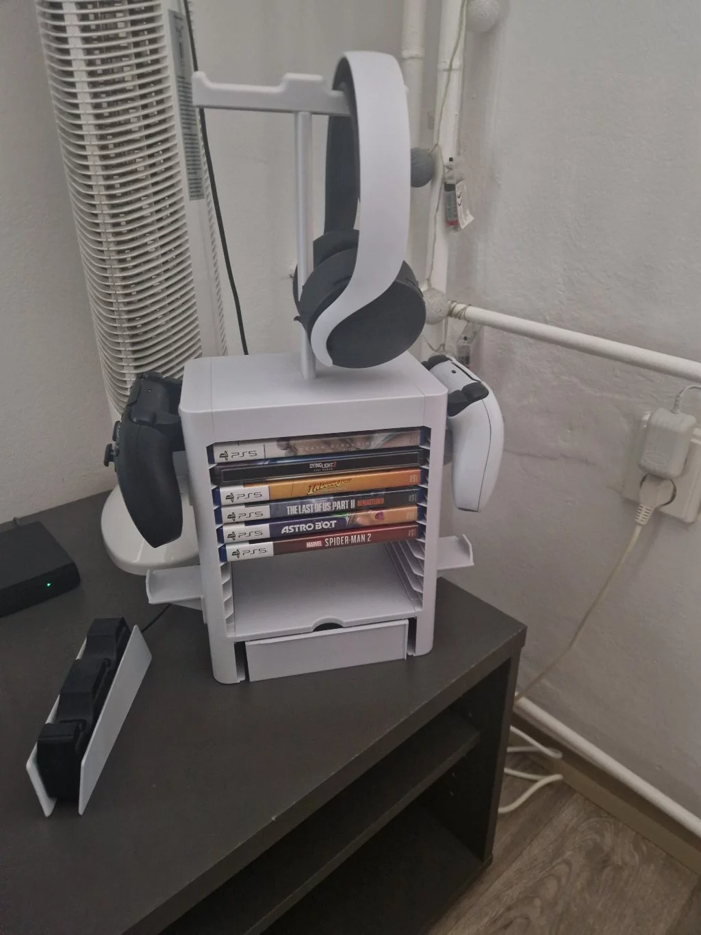 Tegye ki játékgyűjteményét erre a gyönyörű fehér állványra, hogy a kontrollerekkel és headsetekkel együtt mindig kéznél legyen. Az állvány a következő típusú konzoljátékokhoz illeszkedik (PS5, PS4, XBOX ONE, Xbox Series X|S, Nintendo Switch ).Az állványt a bemutatott játékok, kontrollerek és fejhallgatók nélkül szállítjuk.