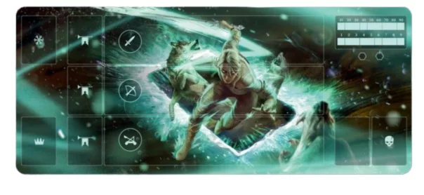 A lenyűgöző grafika kiváló minőségű, csúszásmentes felületű játékalátétre van nyomtatva, amely játék közben megvédi a kártyáidat és kiegészítőidet.