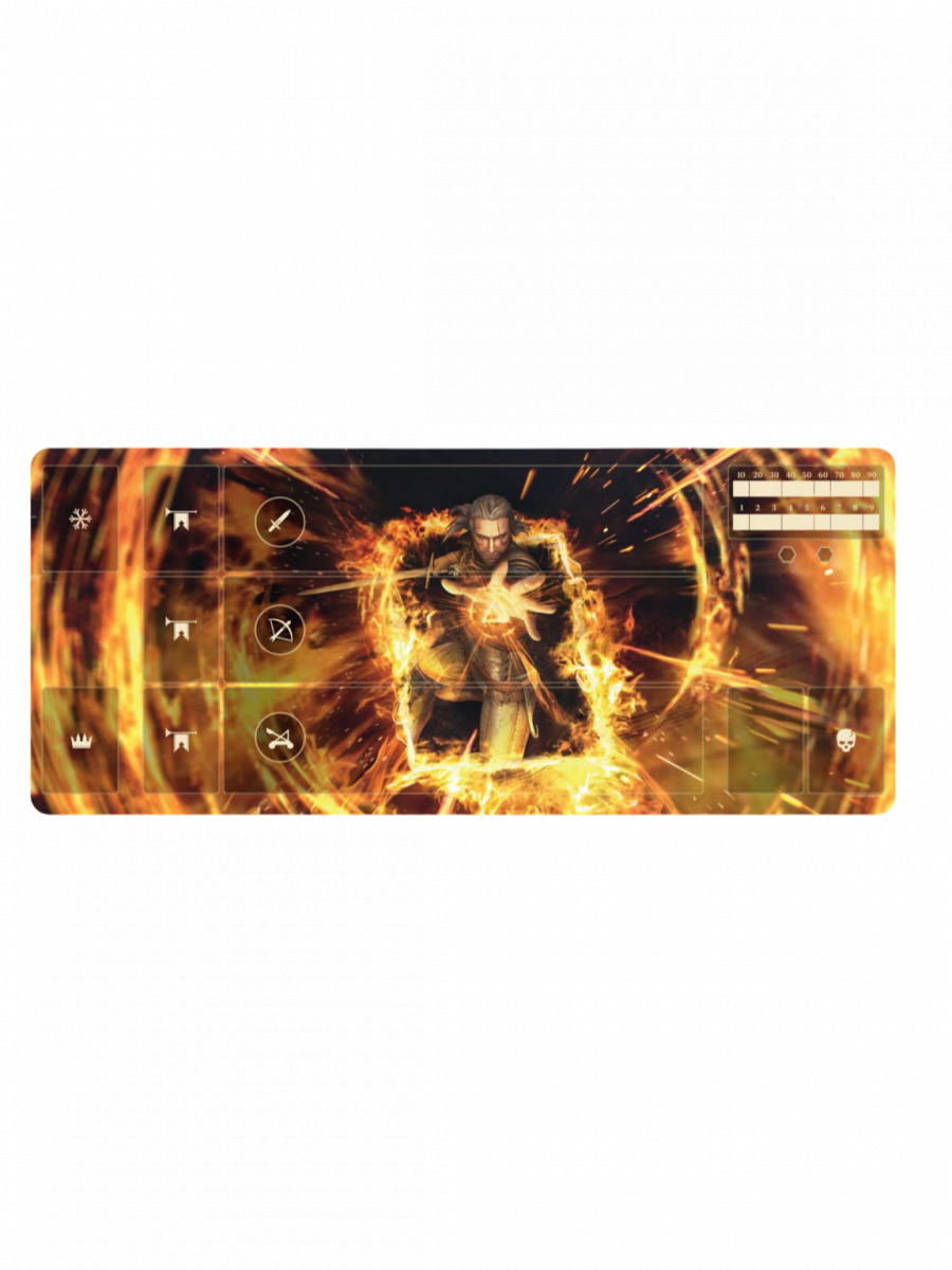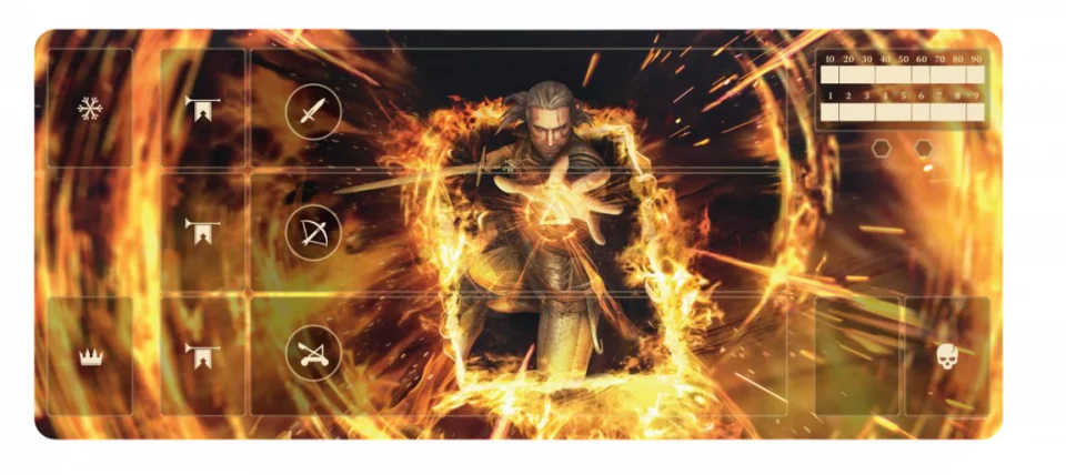 A lenyűgöző grafika kiváló minőségű, csúszásmentes felületű játékalátétre van nyomtatva, amely játék közben megvédi a kártyáidat és kiegészítőidet.