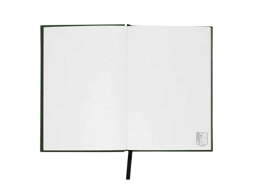 A stílusos zöld borítót a Wings of Freedom embléma és a zárósorozat motívuma díszíti – a bátorság és szabadság szimbóluma.A masszív kemény borító, a minőségi kötés és a beépített könyvjelző tökéletessé teszi jegyzeteléshez, naplóíráshoz vagy vázlatkészítéshez.