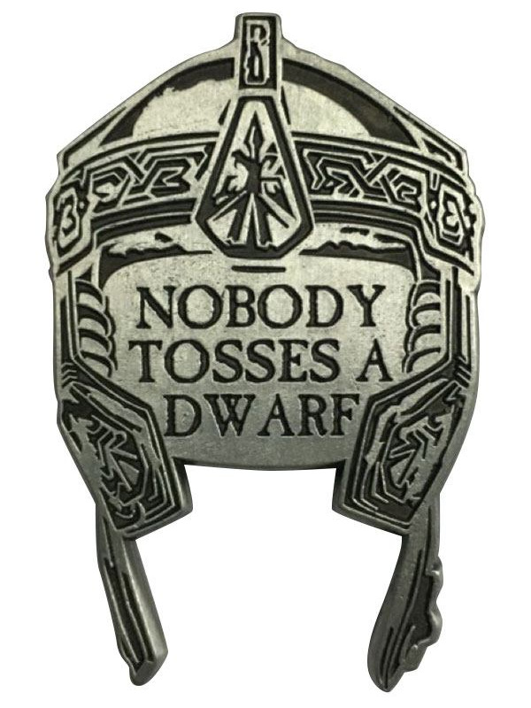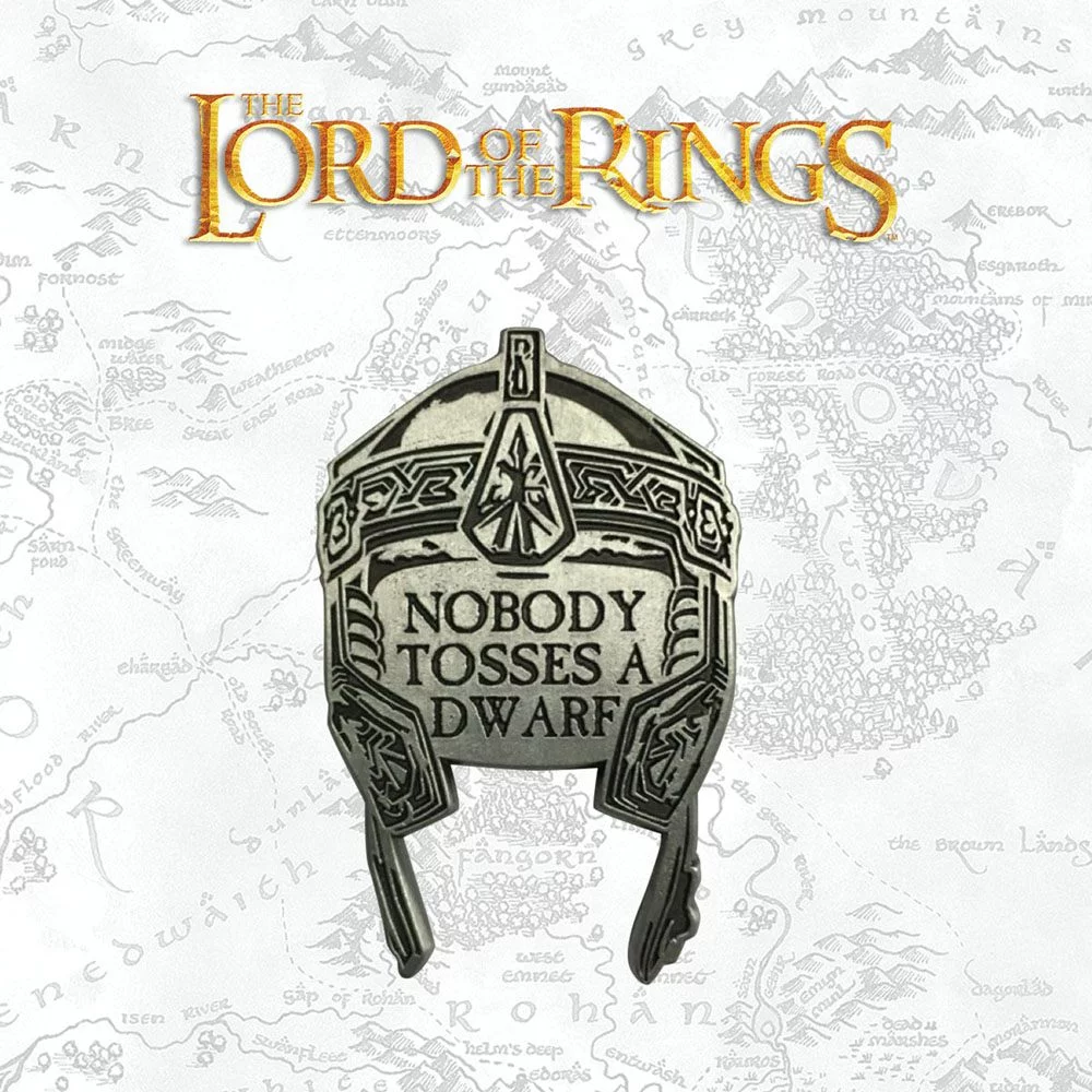 A „Nobody Tosses a Dwarf” ikonikus, humoros idézettel ellátott gyűjtői kitűző A Gyűrűk Ura világából – Gimli sisakjának formájában – a Fanattik kiadásában jelent meg. Világszinten mindössze 9995 darabra limitált, mindkét oldala dombornyomott, és minden egyes darab egyedi sorszámmal rendelkezik. Gyűjtői blisztercsomagolásban érkezik.Átmérő: később pótoljuk