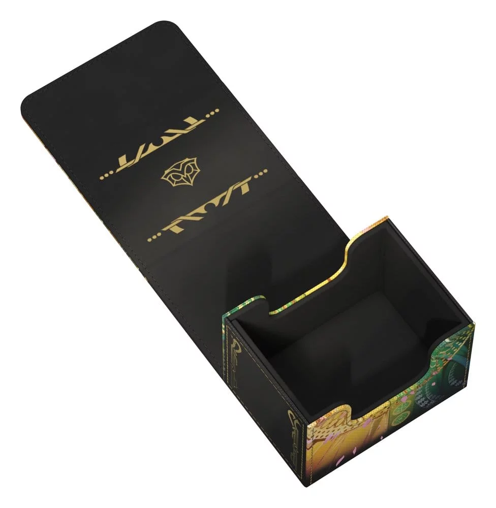 A tartós Xenoskin felület, a masszív kialakítás és a puha belső borítás megóvja kártyáidat a sérülésektől, míg az erős mágneses zár gondoskodik arról, hogy minden biztonságosan a helyén maradjon. Ideális választás játékosok és gyűjtők számára, különösen a Magic: The Gathering rajongóinak, akik mindig tökéletesen felkészített paklival szeretnének játszani.