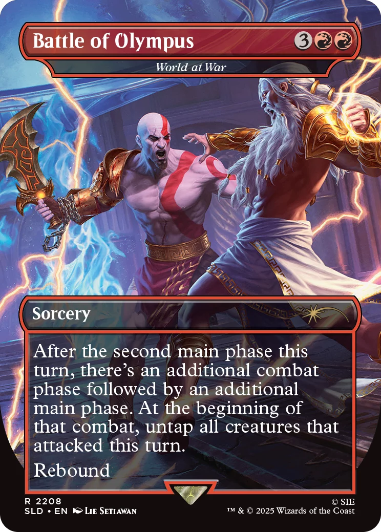 Ez az egyszínű, mono-vörös szett öt kártyát tartalmaz, amelyek a God of War ikonikus pillanatait és fegyvereit alakítják át varázslatokká és lényekké.Megtalálod benne Kratost, a God of War-t, aki pusztítást hoz kettős csapásával, valamint a lángoló Kratos’ Rage-et, a The Blades of Chaos Bond-ot, a Hades Grip-et és a monumentális Battle of Olympus-t, ahol az istenekkel vívja halálos küzdelmét.