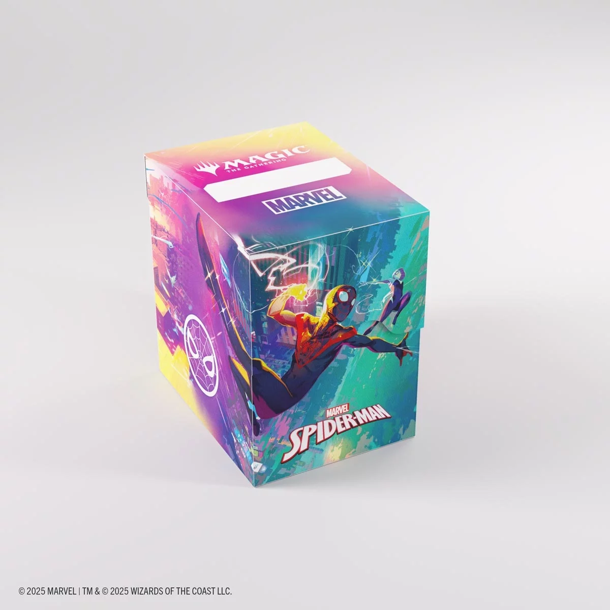 A Gamegenic – Magic: The Gathering Soft Crate 80+ Spider-Man/Spider-Gwen stílusos kártyatartó doboz a praktikumot ötvözi a Spider-Verse multiverzum ihlette látványos dizájnnal. A hivatalosan licencelt motívum az akciódús Spider-Man és Spider-Gwen duót ábrázolja, neon színekben, amelyek egyedivé és feltűnővé teszik gyűjteményed megjelenését. A doboz több mint 80 duplán tokba helyezett kártyát képes befogadni, zsetonokkal és sideboarddal együtt. Tartozik hozzá egy speciális zsetondoboz innovatív zárómechanizmussal, rugalmas elválasztó, valamint egy önzáró Cobra Neck fedél, amely több mint 180°-ban nyitható.