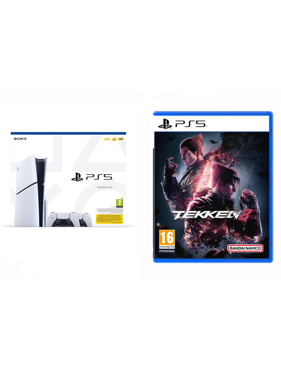 1x Konzole PlayStation 5 (Slim) 1 TB - Fehér + 2x DualSense fehérAkciós konzolkészlet Akciós konzolkészlet PlayStation 5 Slim, 2x DualSense kontroller + Tekken 8 játékok.