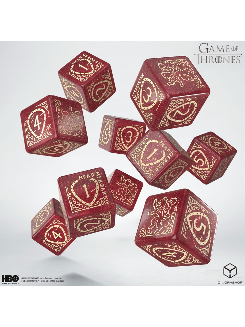 Hozd el a Lannister-ház arany hatalmát ezzel a tízdarabos kockakészlettel. A piros kivitel arany részletekkel és az oroszlán címerrel fenséges megjelenést kölcsönöz, luxusérzetet adva dobásaidnak.