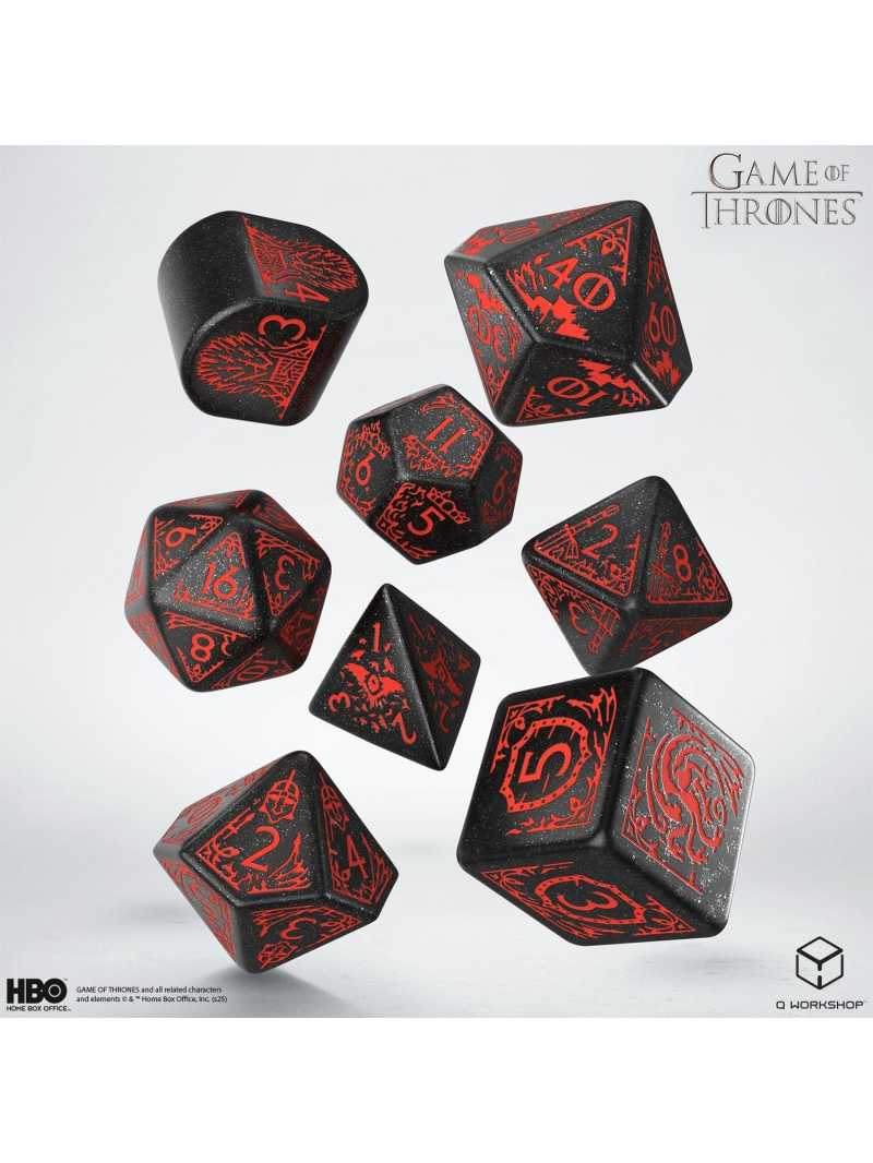 Lobbantsd lángra játékaidat a Trónok harca – Targaryen kockakészlettel. A nyolc darabból álló, fekete-piros kivitelű szettet a háromfejű sárkány jelképe díszíti, amely a valyriai ház hatalmát és szenvedélyét idézi.