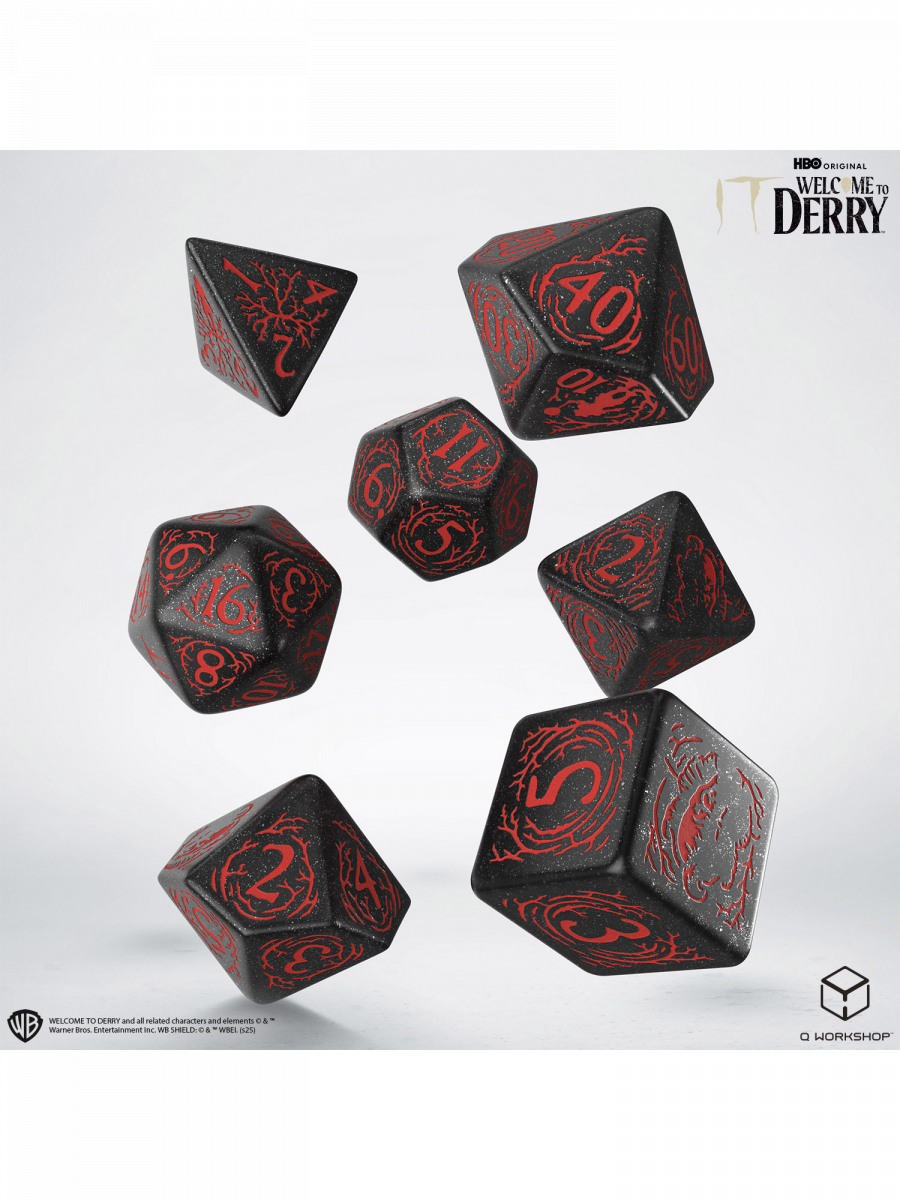 Lépj be a hátborzongató Derry városába az IT – Welcome to Derry dobókockákkal! Minden kockát Stephen King rémregénye és az HBO sorozata ihlette sötét szimbólumok díszítenek – többek között a bohóc vigyora és a vörös léggömb.