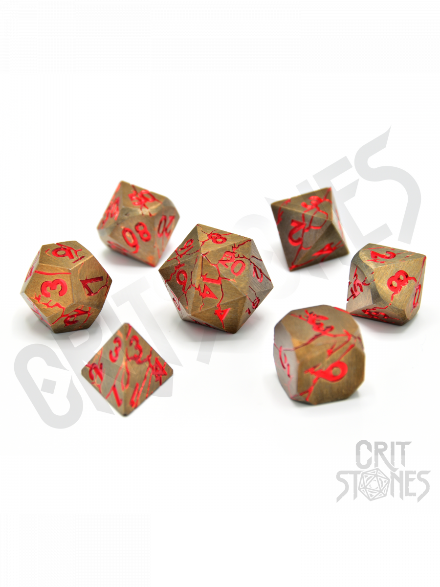 A Rage Within Metal készlet a sötét fémet vörös erezett mintázattal ötvözi, mintha a tiszta energia pulzálna a felszín alatt. Minden kocka nehéz, kompromisszummentes, és epikus pillanatokra született az asztalnál.