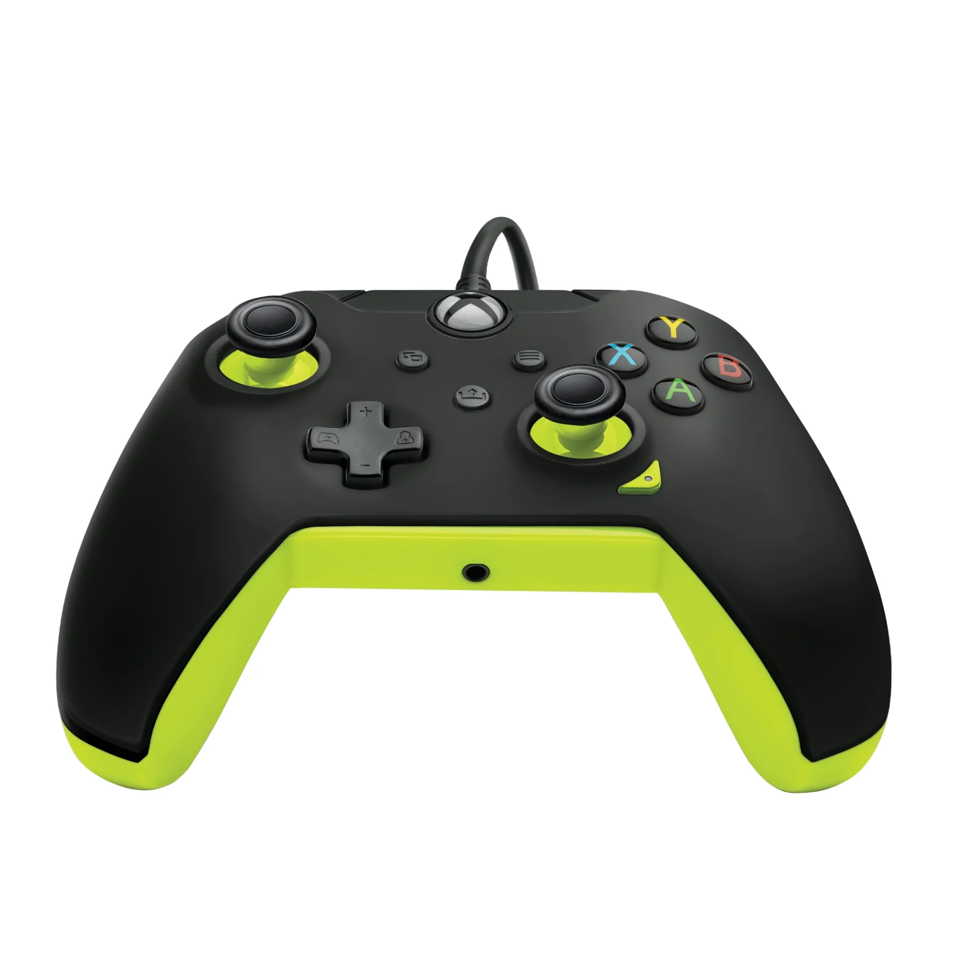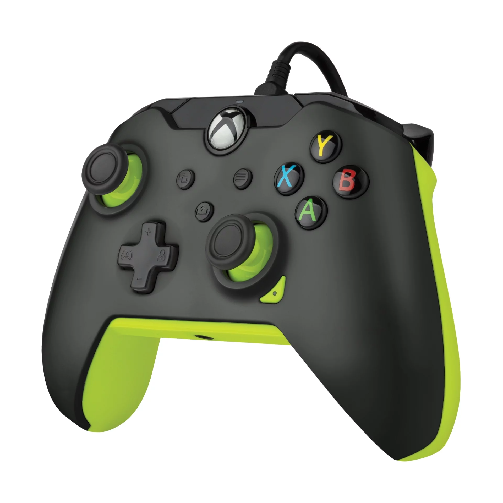 A PDP Electric Black kontroller az Xbox Series X|S, Xbox One és Windows rendszerekhez elegáns fekete dizájnt kínál neon zöld részletekkel, amelyek dinamikus megjelenést biztosítanak.