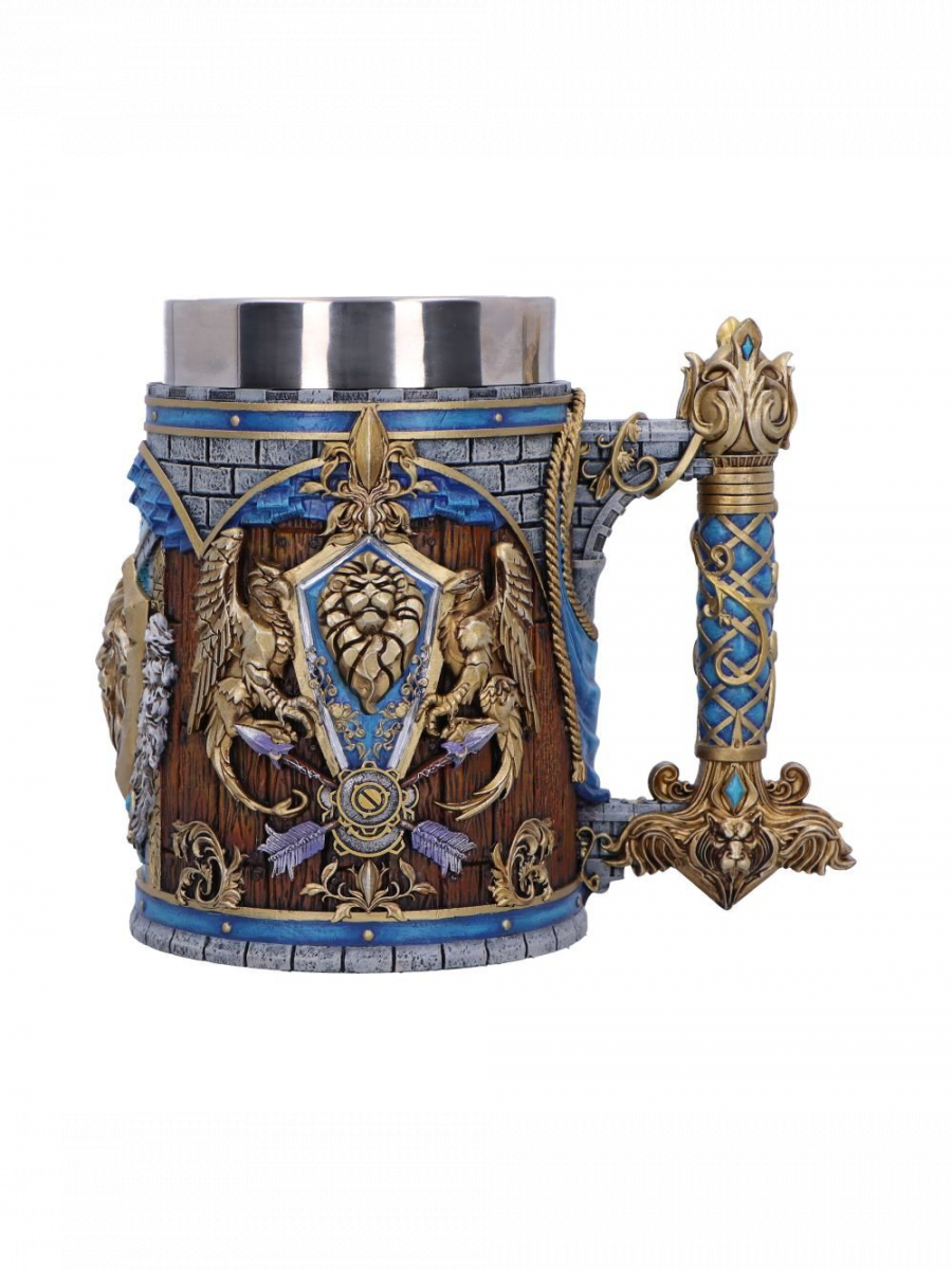 Masszív korsó a World of Warcraft világának ihletésében, amely büszkén viseli az Szövetség jelképét. A gazdag kék–arany díszítés, a domborműves embléma és a precízen kidolgozott részletek egyértelműen megmutatják, melyik oldalon állsz.