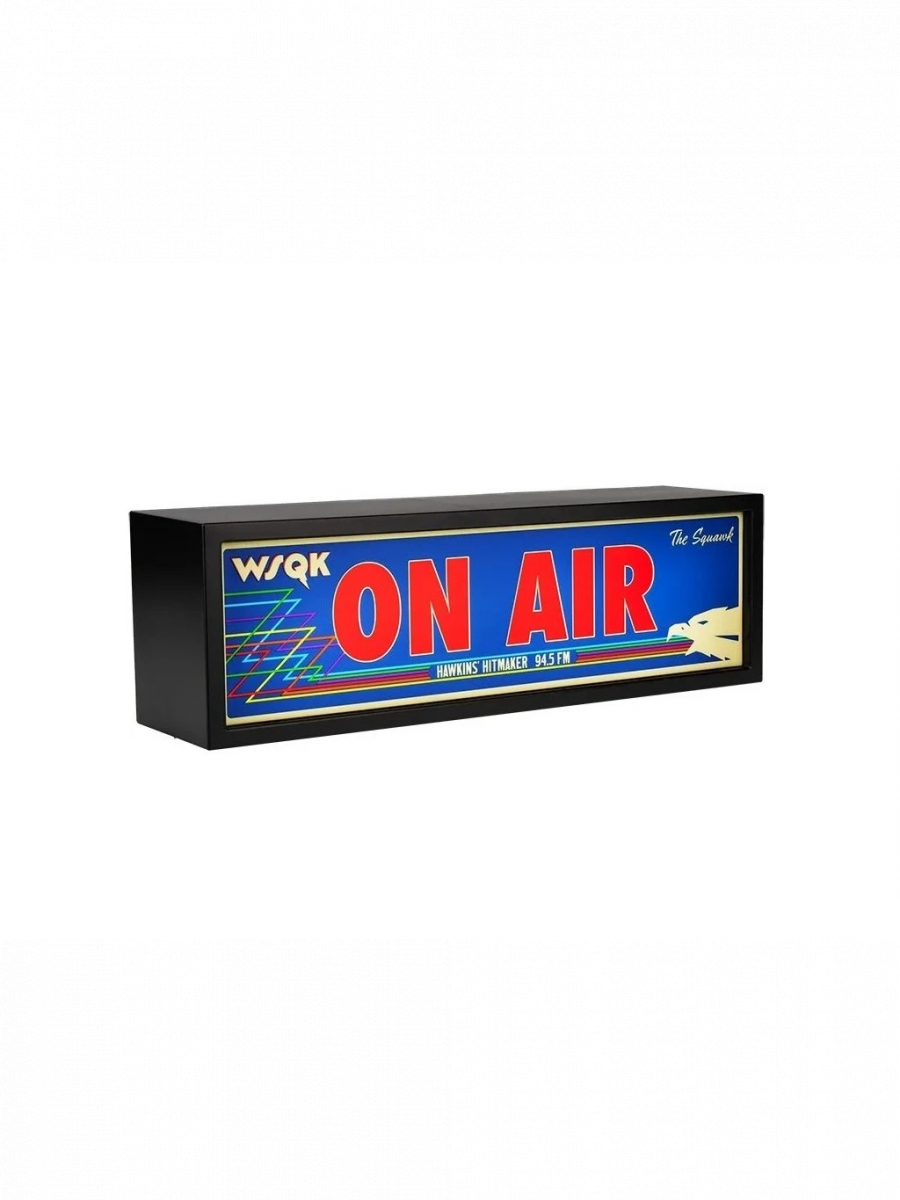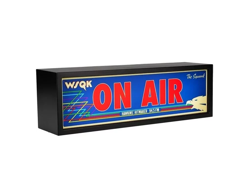 Stílusos Stranger Things – On Air lámpa, a hawkinsi WSQK rádió stílusában. Bekapcsoláskor a „ON AIR” felirat vörös fénnyel világít, és a sorozat hangulatát varázsolja a szobádba. Tökéletes kiegészítő minden Stranger Things-rajongónak és a retró dizájn kedvelőinek.