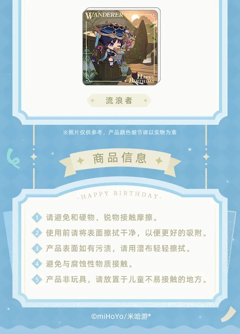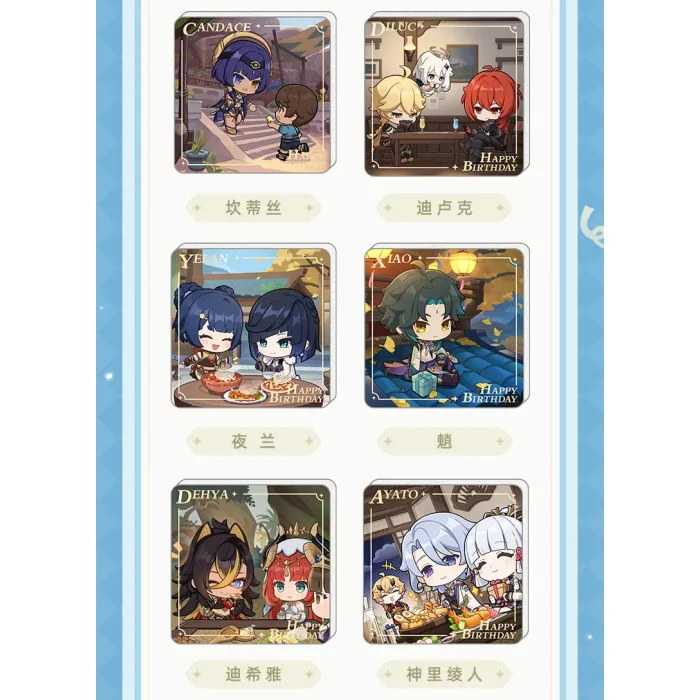 Ez a bájos mágnes chibi Genshin Impact karakterekkel minden pillantásnál eszedbe juttatja a kedvenc hőseidet. Mindegyik motívum az adott karakter születésnapjának hangulatát és jellegzetes stílusát ragadja meg.