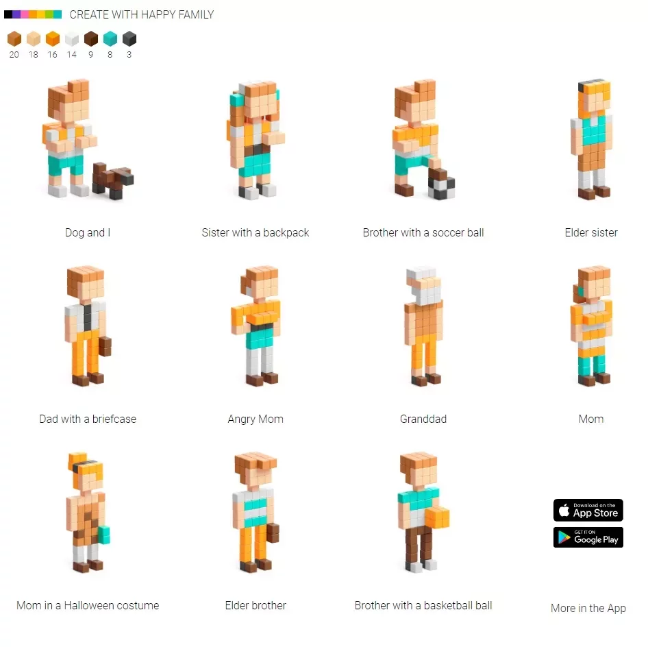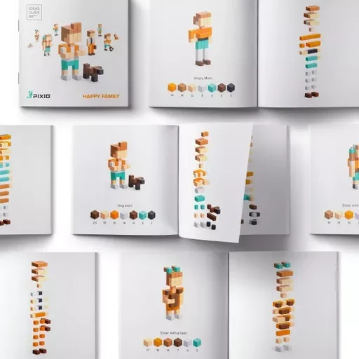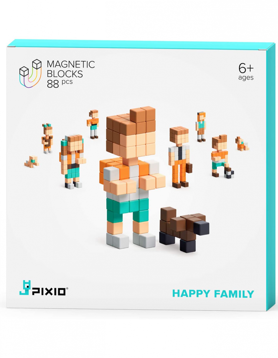 PIXIO Boldog Család 88 pixio blokkot tartalmaz 7 színben. Megőrzi a kreatív ötleteidet és színes örömöt visz az életedbe. Kezdd az egyszerű modellek építésével az útmutatók szerint, majd amikor készen állsz, haladj tovább a saját terveid készítésére. Ezzel a készlettel sok karaktert építhetsz, mint például anya, apa, nagymama vagy nagypapa, és sok más.