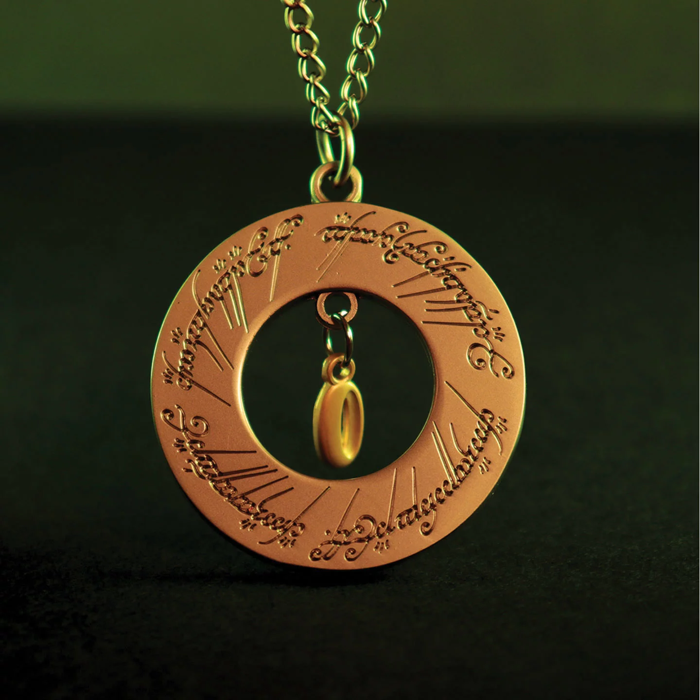 Ez a limitált kiadású, Egy Gyűrű motívummal készült medál úgy hat, mintha valódi relikvia lenne — és minden rajongó nyakában azonnal kitűnik.A lenyűgözően dombornyomott karika az ikonikus tünde írással egészül ki, középen pedig egy apró, aranyszínű gyűrű teszi teljessé a dizájnt.