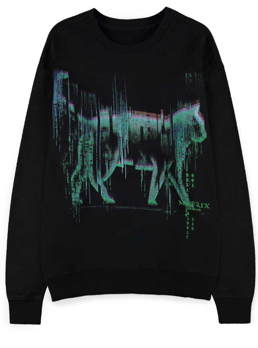 Fekete unisex pulóver kódolt macskával a legendás Mátrix rajongóknak. Hivatalos engedéllyel rendelkező, kiváló minőségű anyagból készült termék.Anyag: 85% pamut, 15% poliészter