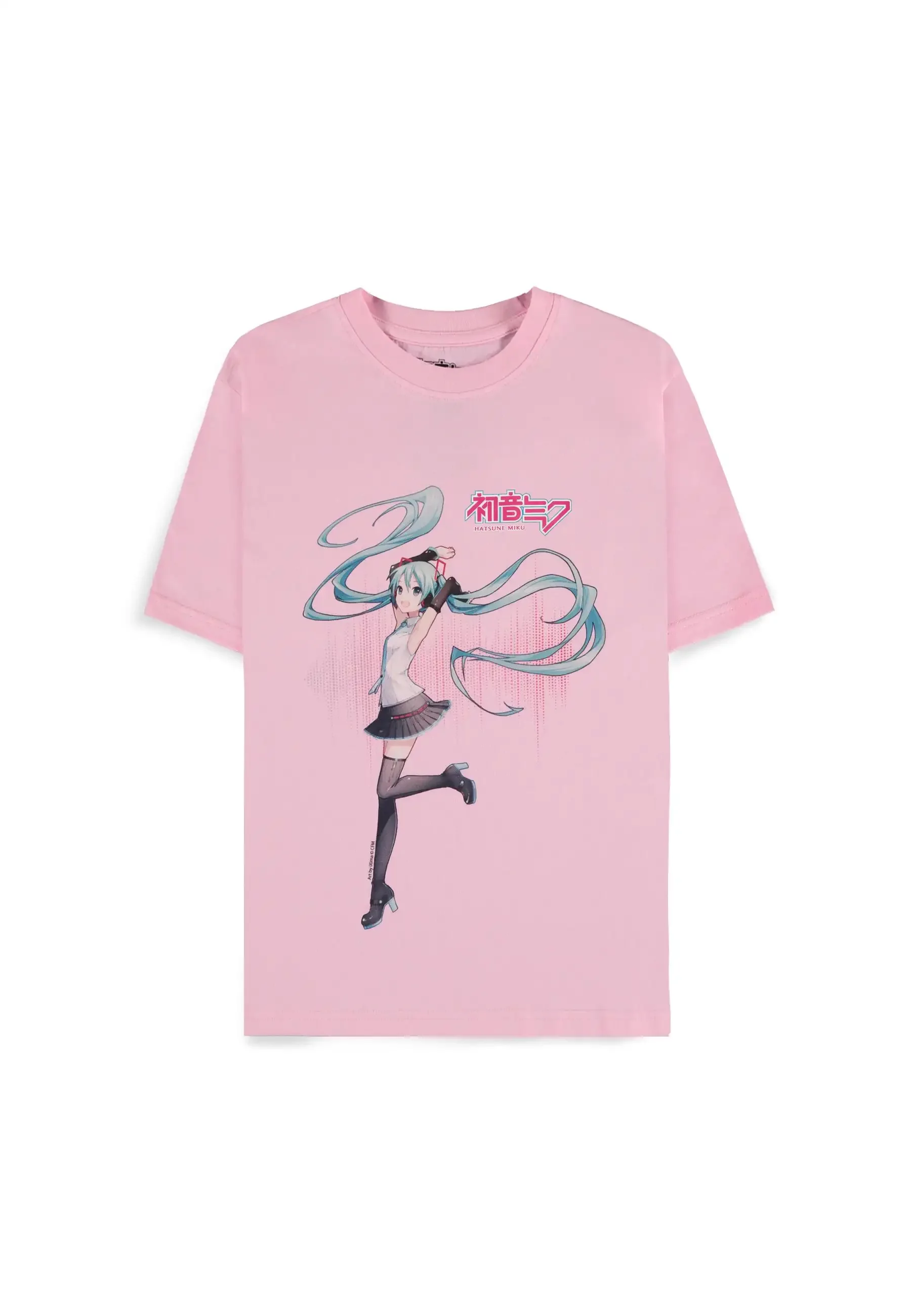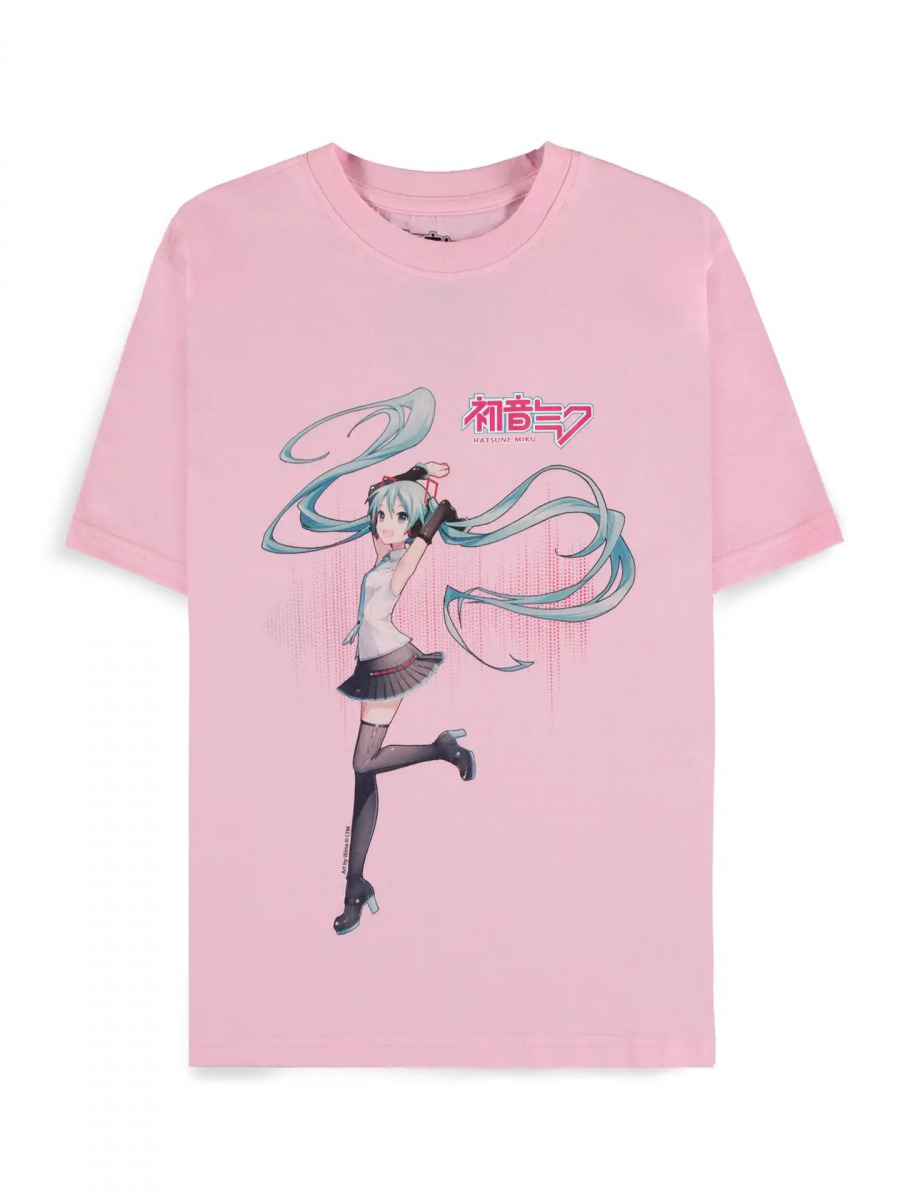 Aranyos, rózsaszín póló a legendás virtuális énekesnővel, Hatsune Mikuval, aki stílusával és energiájával minden öltözéket feldob.