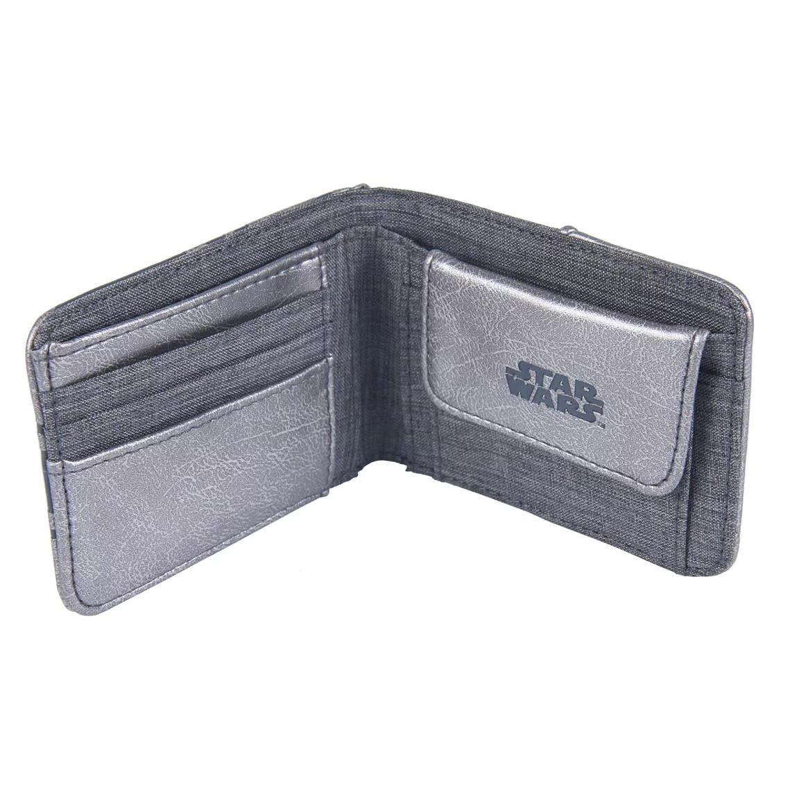 A Csillagok háborúja (Star Wars) a Mandalorian sorozat világából származó szürke pénztárca minden kényelmet biztosít , amit szükséges egy pénztárcától - egyedi tervezés, zseb kis érmékhez, rengeteg rekesz kártyákhoz és bankjegyekhez.
