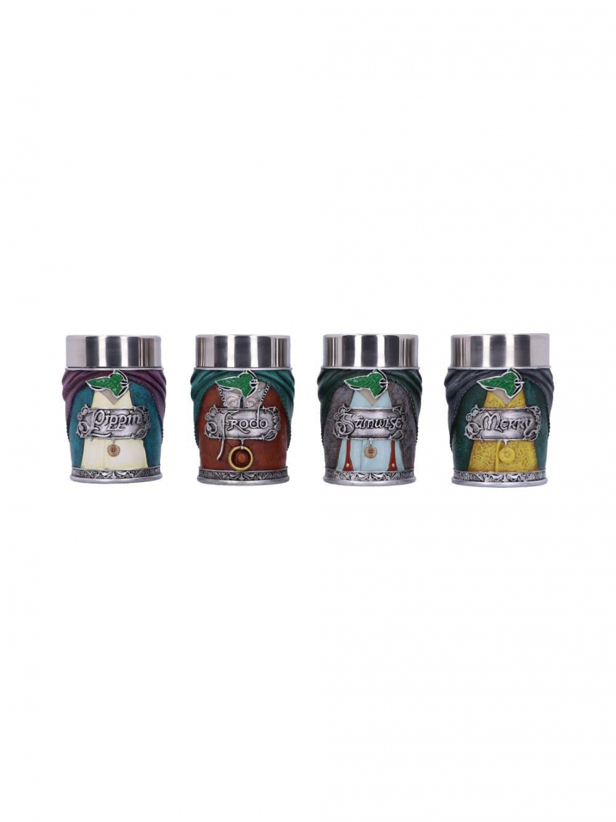 A Nemesis Now négy darab luxus polirezinből és rozsdamentes acélból készült felespohár készletét a Gyűrűk Ura négy híres hobbitja - Frodó, Sam, Smiley és Pippin - ihlette!Anyag: polirezin/rozsdamentes acél