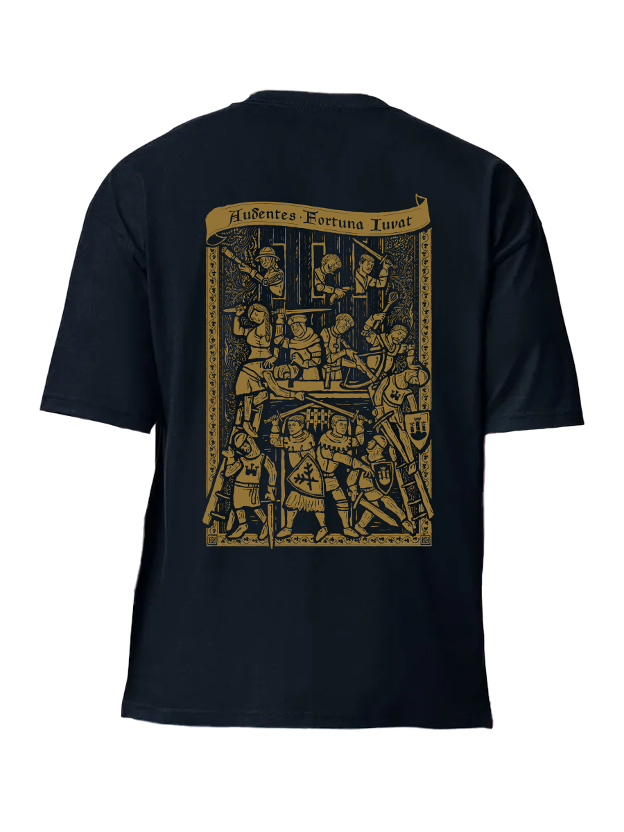 • Suchdol azon pillanatok közé tartozik, amelyekre a Kingdom Come: Deliverance II-ben egyszerűen nem lehet elfelejteni. Egy csata, ahol minden eldől, mindenhol káosz uralkodik, és te csak reméled, hogy valahogy túléled. Ezt a hangulatot vittük át a póló hátoldalára egy középkori metszetek által inspirált illusztráció formájában, amelyen minden kedvenc hősöd helyet kapott. Minél tovább nézed, annál több részletet fedezel fel.